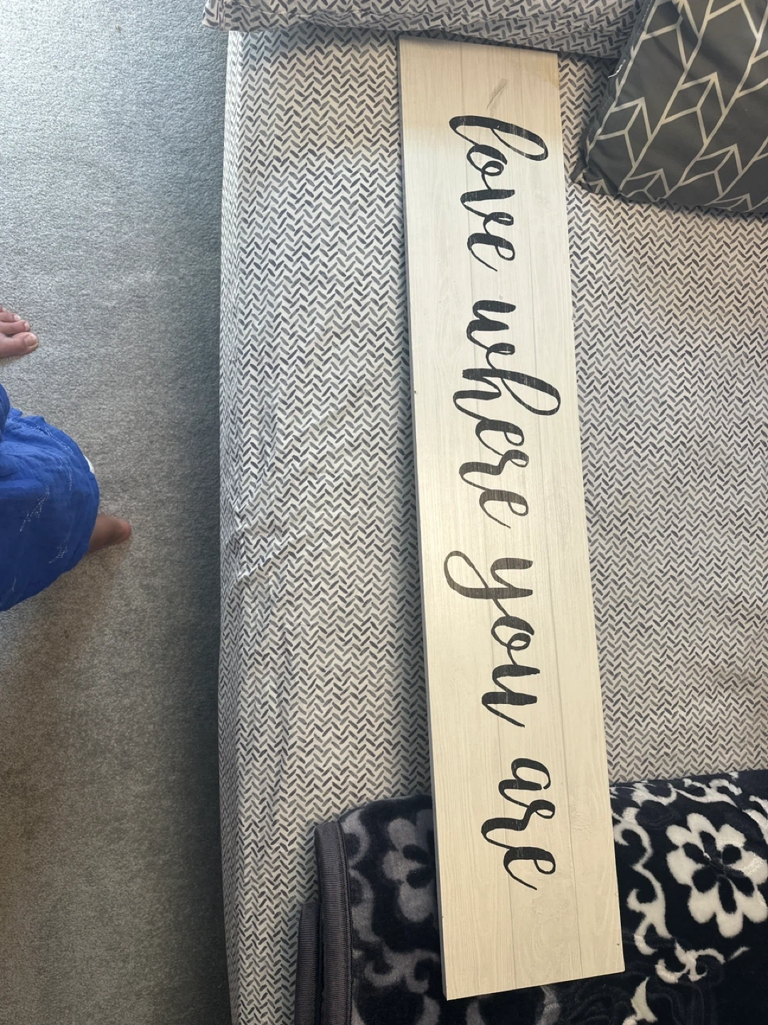 Here's a charming wooden sign that reads "Love where you are" in a lovely script. It's perfect for adding a touch of warmth and positivity to any room in your home