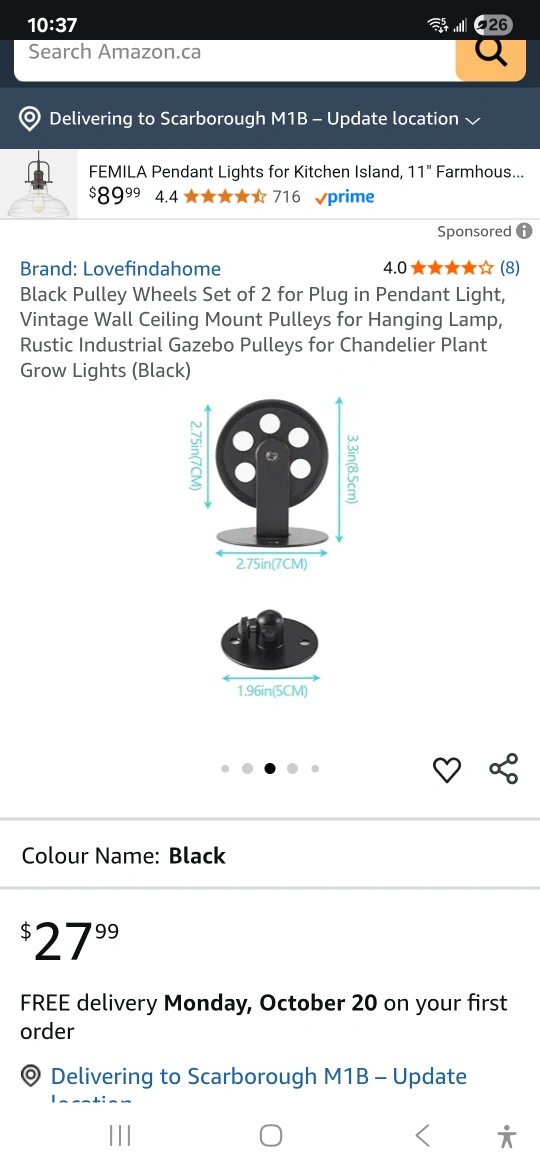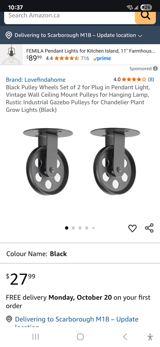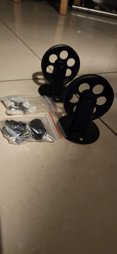 Selling a set of two black pulley wheels from Lovefindahome. These are perfect for hanging lamps or adding a rustic industrial touch to your space. They come with all the necessary mounting hardware.