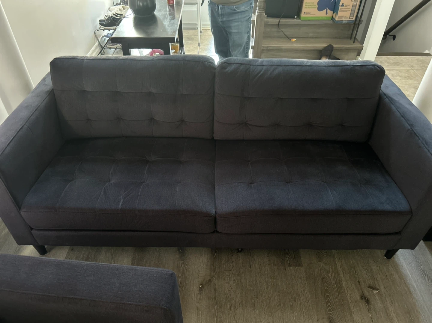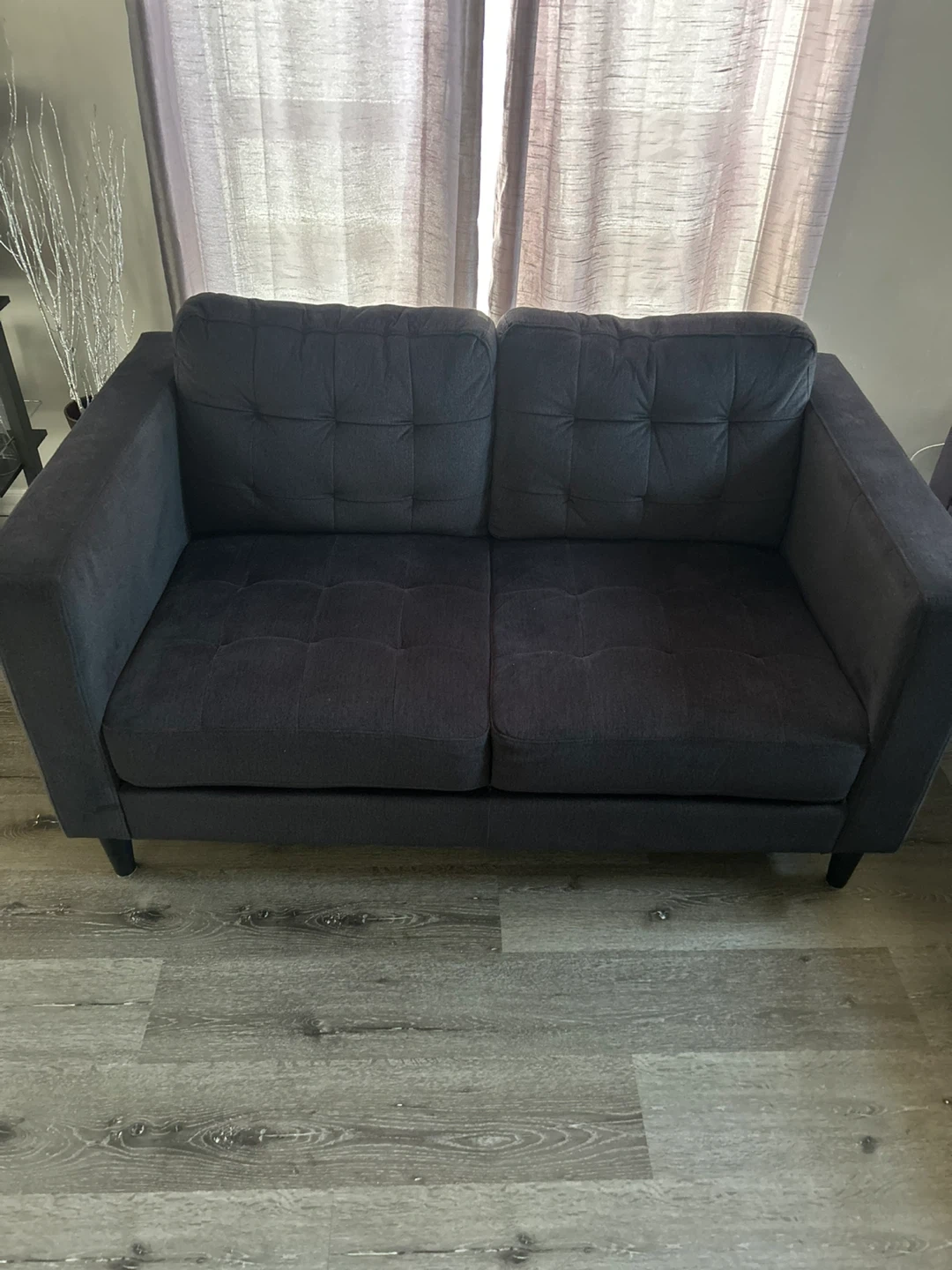 Selling a comfy loveseat & sofa. It's a dark grey/black colour and in great shape! Perfect for a living room or family room.