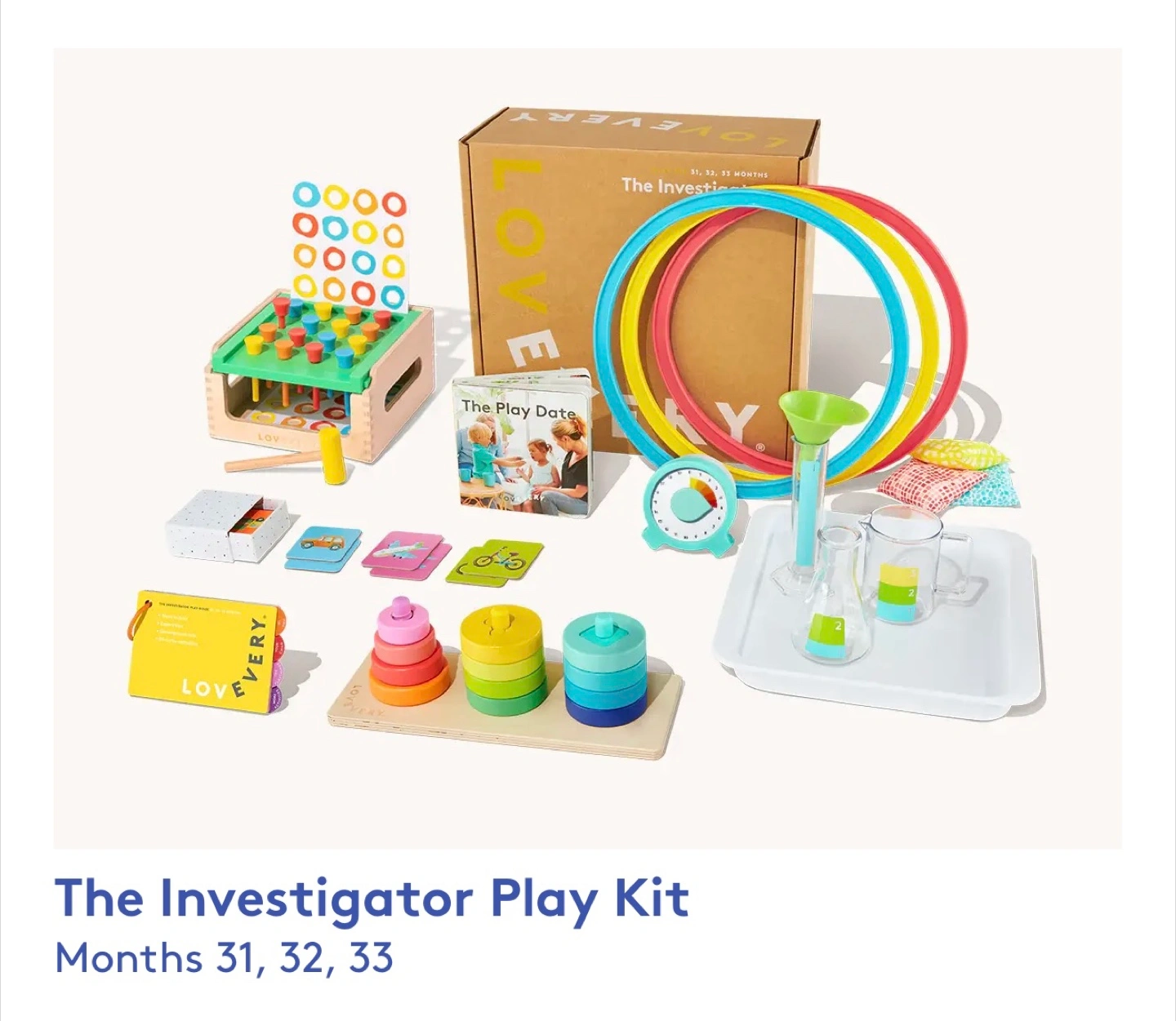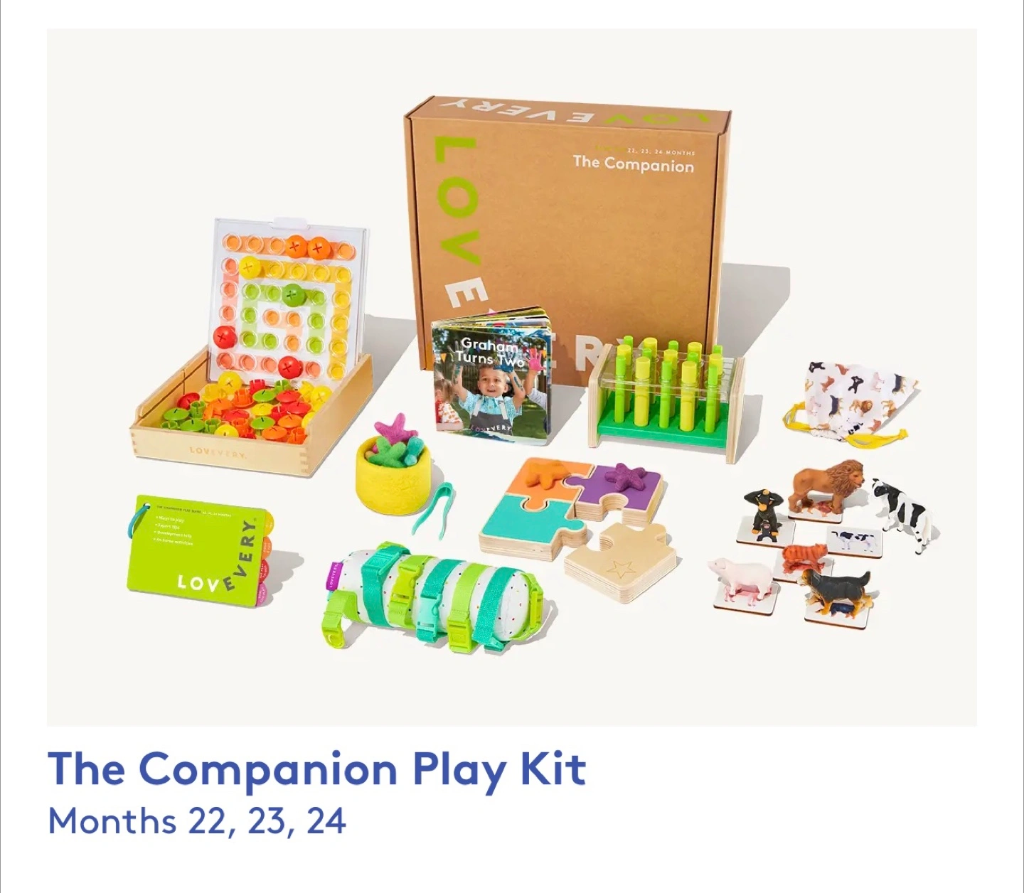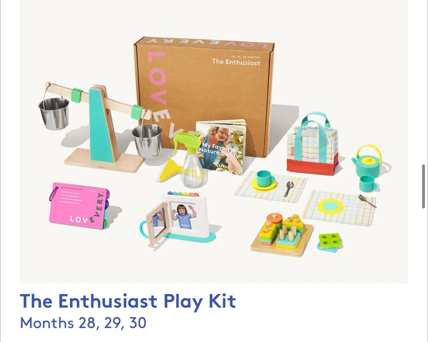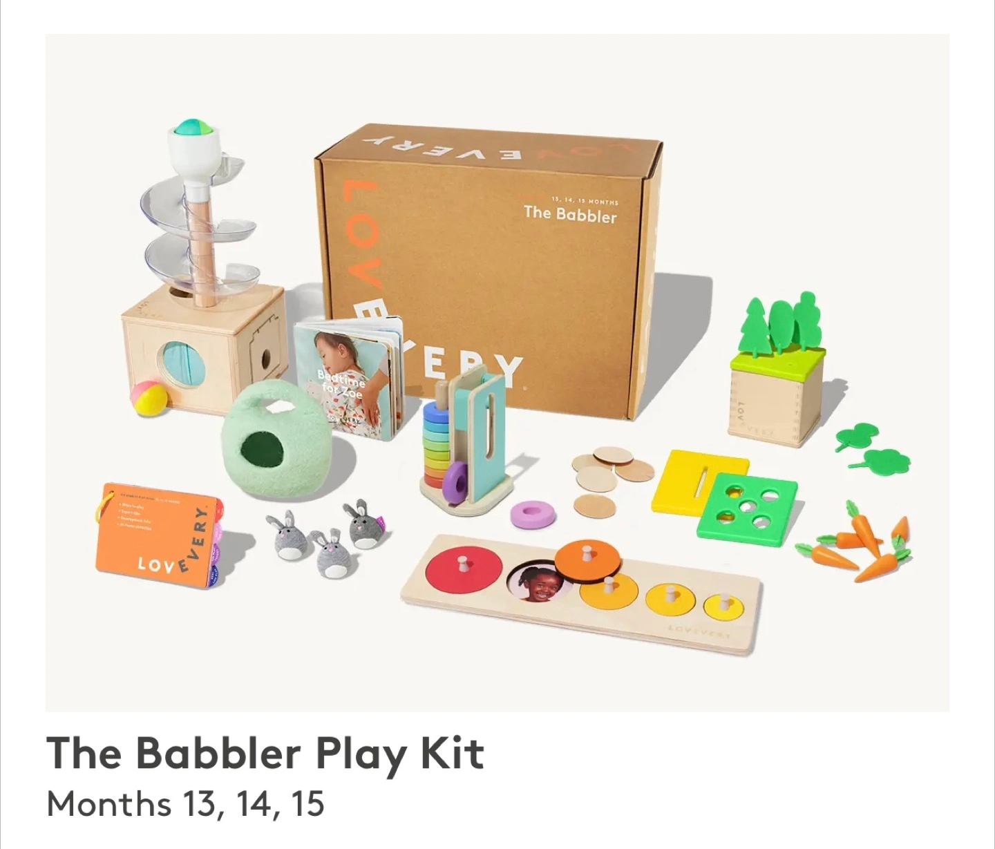I have a selection of Lovevery Play Kits available, perfect for different stages of your little one's development! Each kit is thoughtfully designed to engage and stimulate your child's learning through play. - The Companion Play Kit (Months 22, 23, 24) - The Babbler Play Kit (Months 13, 14, 15) - The Enthusiast Play Kit (Months 28, 29, 30) - The Inspector Play Kit (Months 7-8) - The Thinker Play Kit (Months 11-12) Separate selling each 120.00 all 5 for 580.00