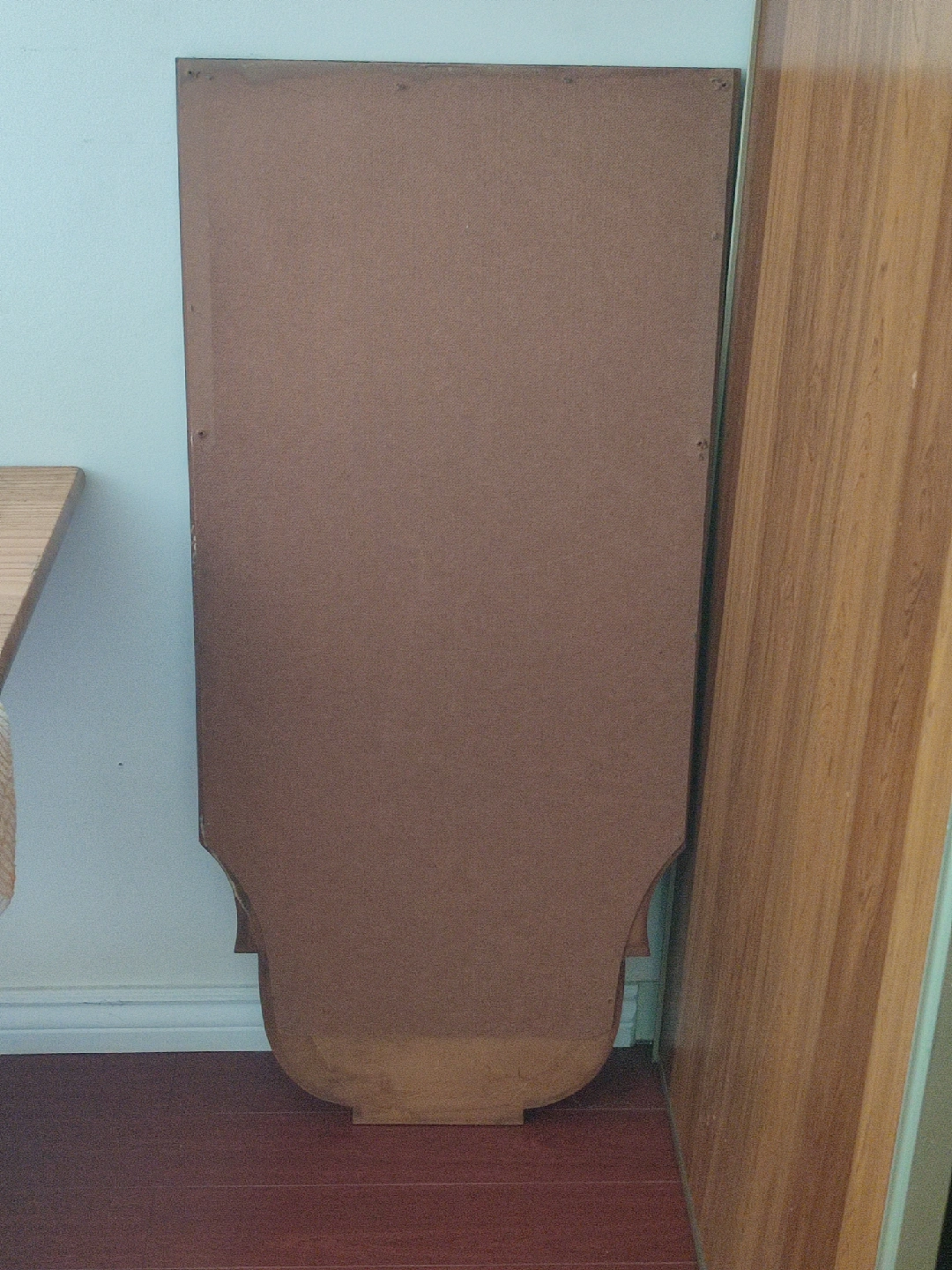 55 x 120cms Solid, sturdy mirror. The frame is starting to come apart. Needs screws/glue/staples, etc. to put it back together but with a little love and work, it will be a stunning addition to your home. Could be hung up on a wall or just leaned against a wall on the floor. Full length mirror, adds tons of light and the look of extra space to any room. If you're just leaning it on the floor, you don't even need to worry about the frame.
