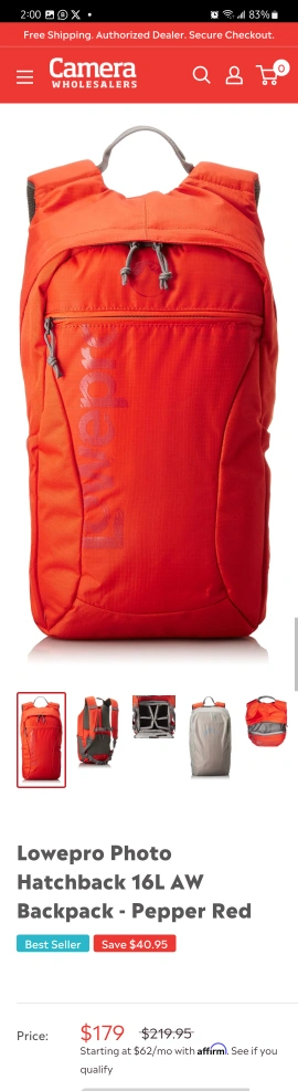 Lowepro Photo Hatchback 16L AW Backpack - Pepper Red In good condition