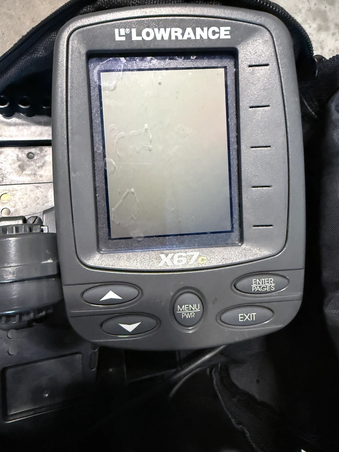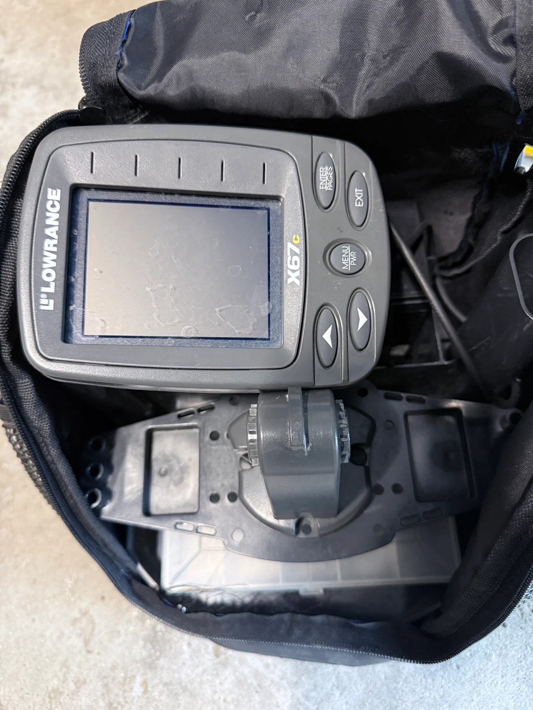 Selling a used Lowrance X67c fish finder. It comes with a carrying case. Please note that the case has some wear and tear. The fish finder itself is in working condition.