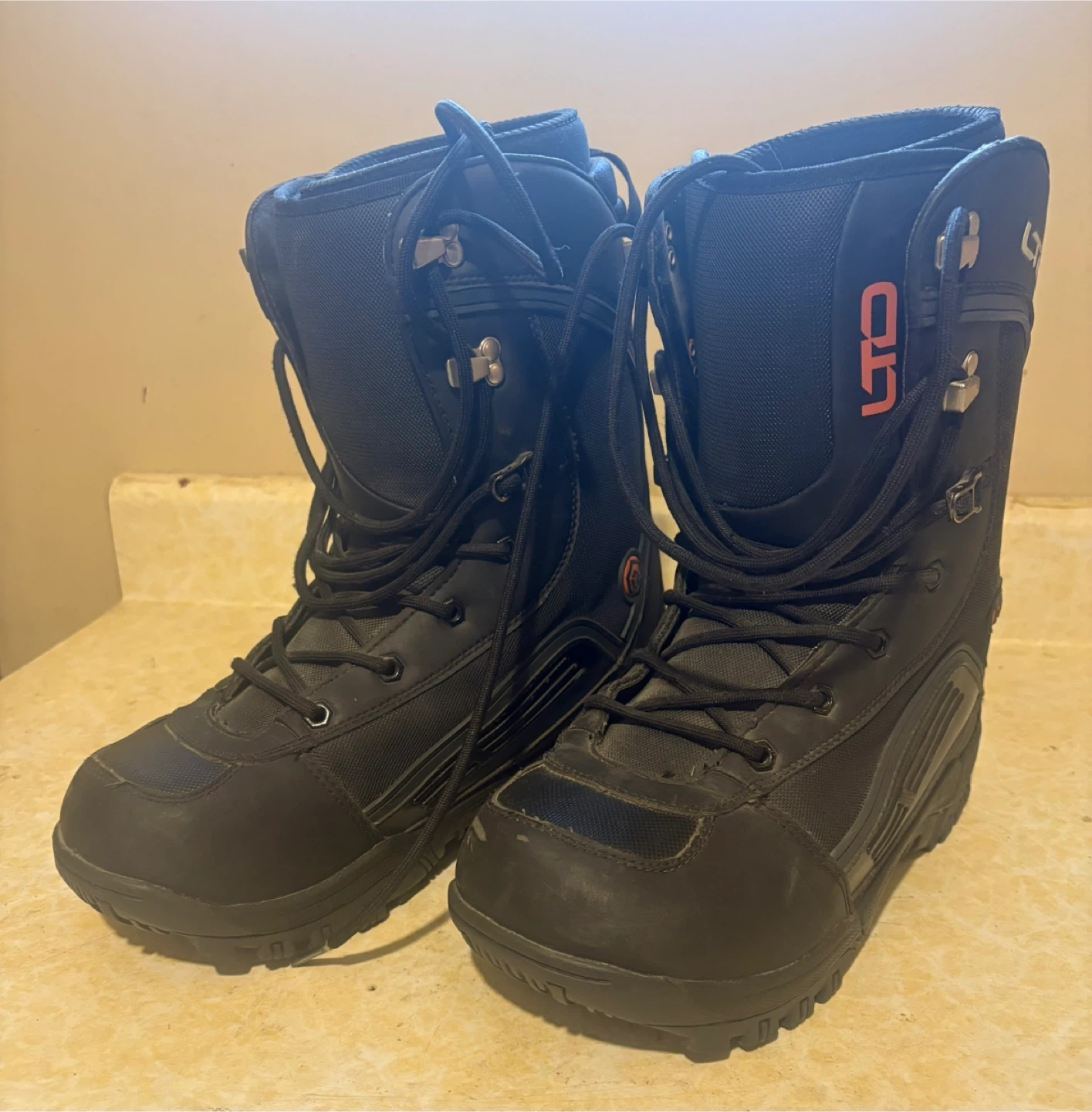 Selling a pair of LTD snowboard boots in men's US size 10. They're black and have some signs of wear on the toes, but still have lots of life left for hitting the slopes!
