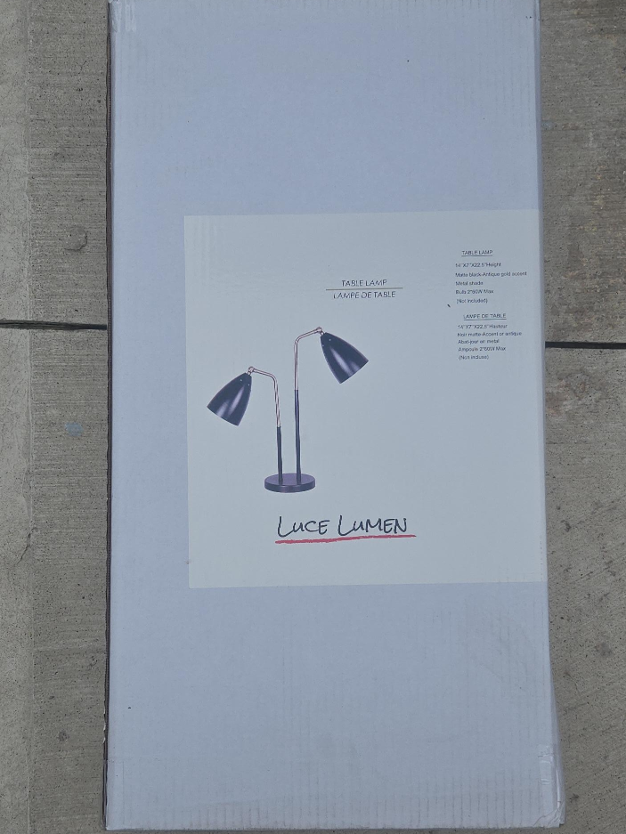 Selling an opened but unused Luce Lumen table lamp! It's still in its original packaging. Packaging box is slightly damaged due to opening but the product inside is like new. This stylish lamp features a metal shade and a sturdy metal pole. A great addition to any room, especially for late night studying. [PICKUP ONLY]