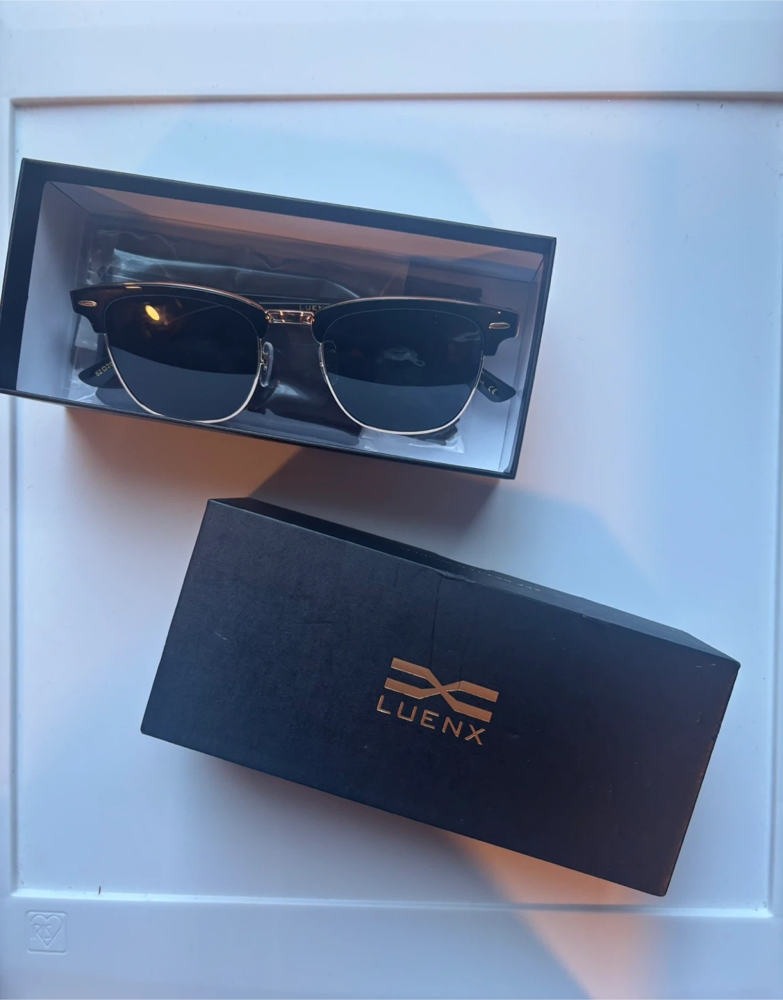 Selling a brand new pair of LUENX sunglasses! They come with the original box. These sunglasses are in perfect condition and ready for a new owner. Stylish and protective, perfect for sunny days!
