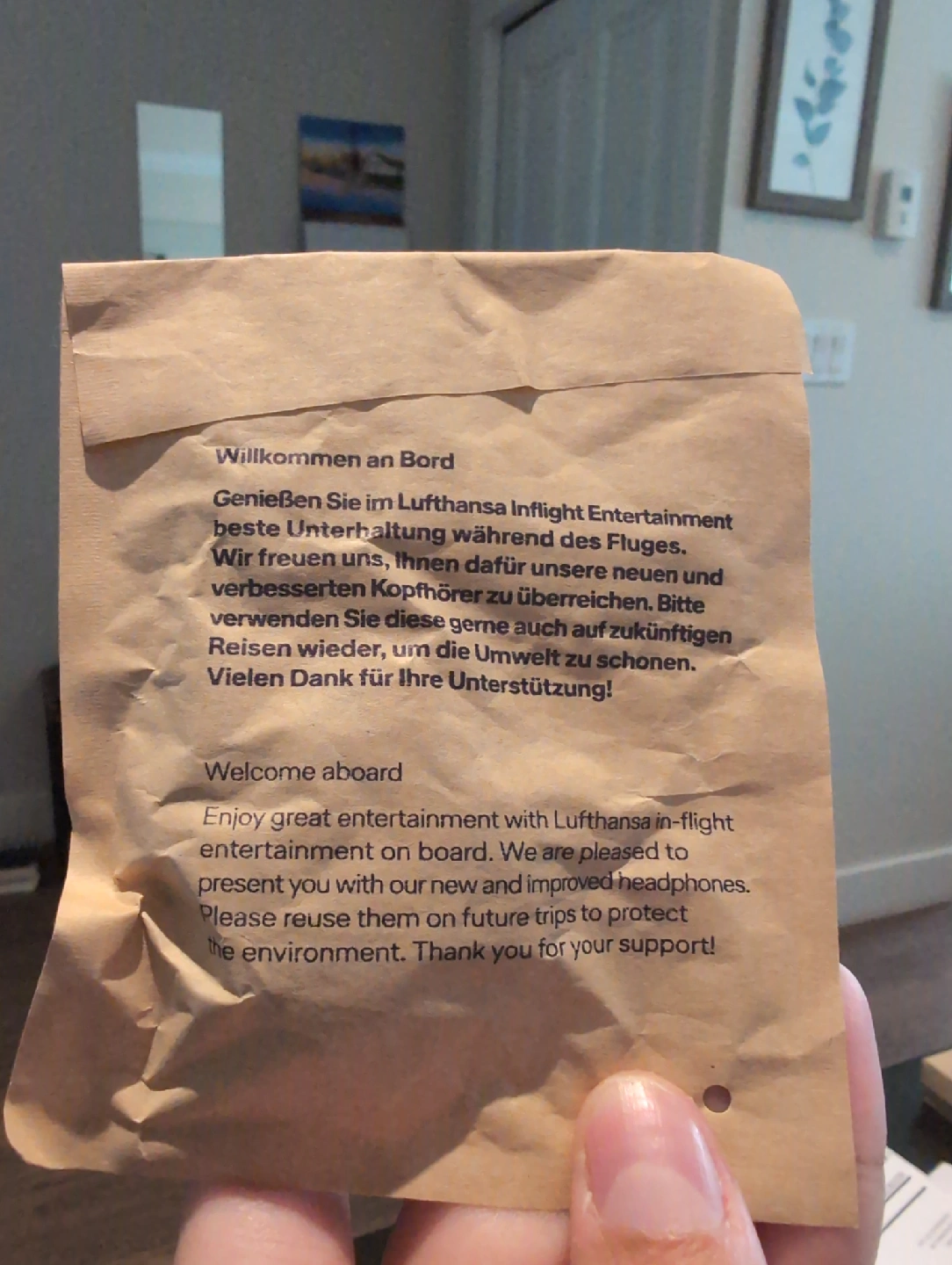 Here are some Lufthansa inflight entertainment headphones. They come in the original packaging. brand new never opened. perfect for the traveller or traveller to be in your life!