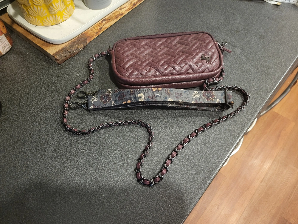 Selling a Lug vegan leather crossbody bag, the Coupe xl! It's in great condition and ready for a new home. The bag has a nice quilted pattern and a chain strap. It also comes with an extra fabric strap. Can also be worn as a belt bag.