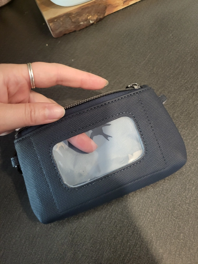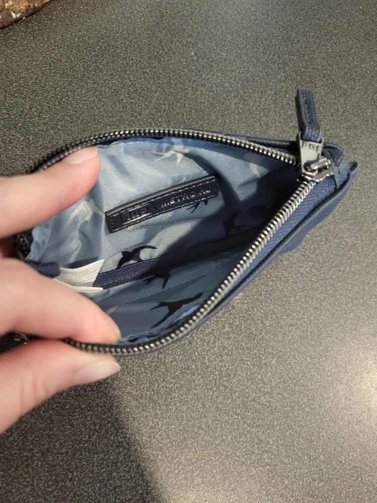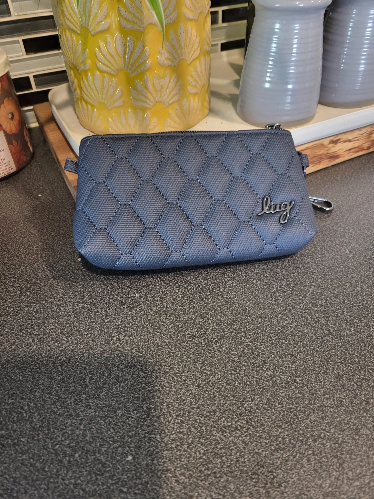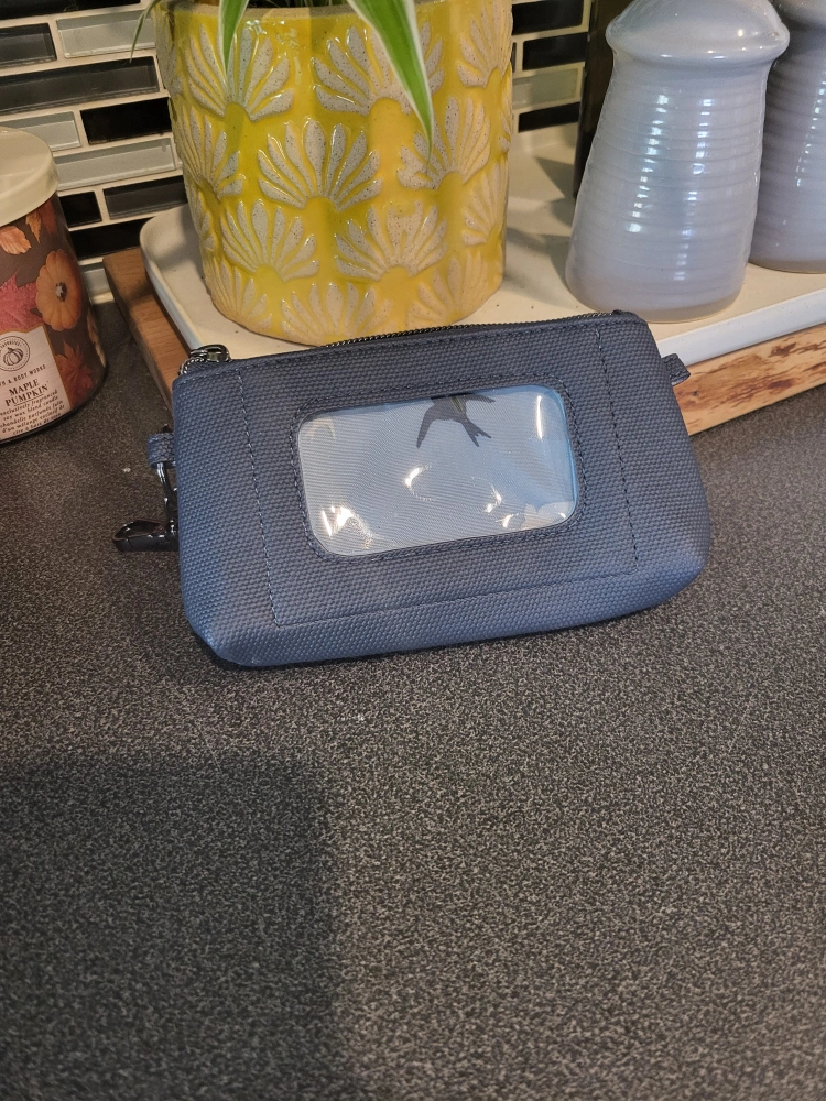 I'm selling a LUG Metro XL in blue. It's in great condition and perfect for keeping your cards organized and showing your office ID cards! It has a clear window on one side, and a zipper closure. The inside lining has a cute bird pattern.