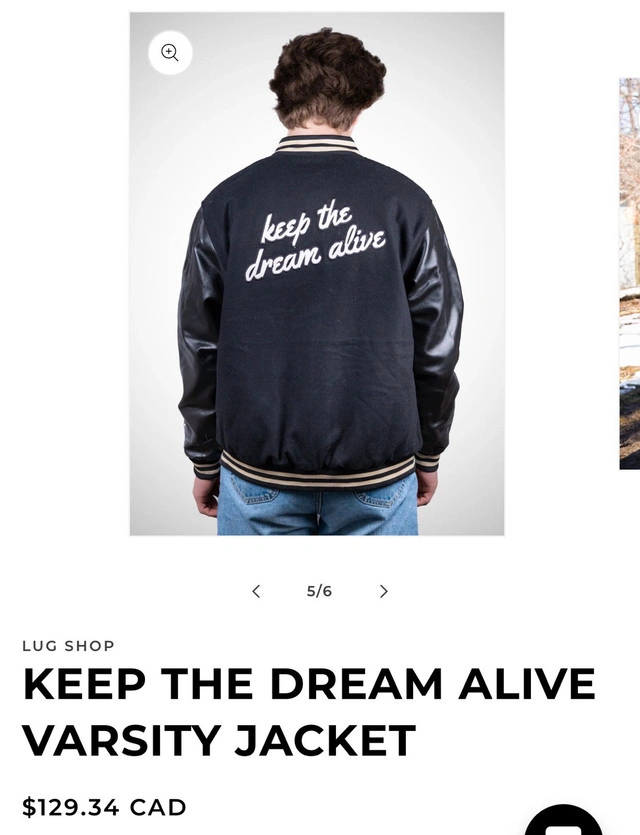Keep your dreams alive with this Lug Shop varsity jacket! This stylish jacket features a classic design with contrasting sleeves and ribbed trim. It's in excellent condition, ready to add a touch of cool to your wardrobe. Key Features: - Brand: Lug Shop - Style: Varsity Jacket - Colour: Black with contrasting sleeves - Size: Small - Condition: Gently used Looking to give this jacket a new home for $90. If the ad's still up, the jacket's still available!
