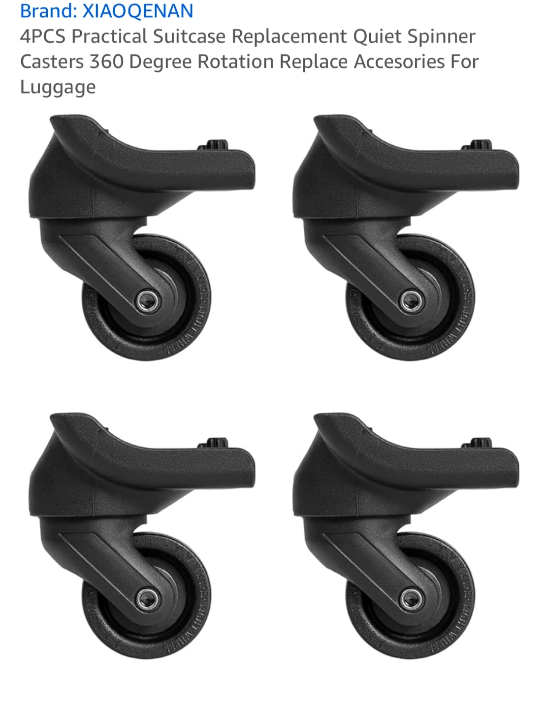 Selling a set of 4 luggage wheel replacements! These are black spinner wheels designed to repair suitcase casters for custom trolley cases. Includes the necessary hardware and a screwdriver for easy installation. Perfect for giving your luggage a new lease on life!