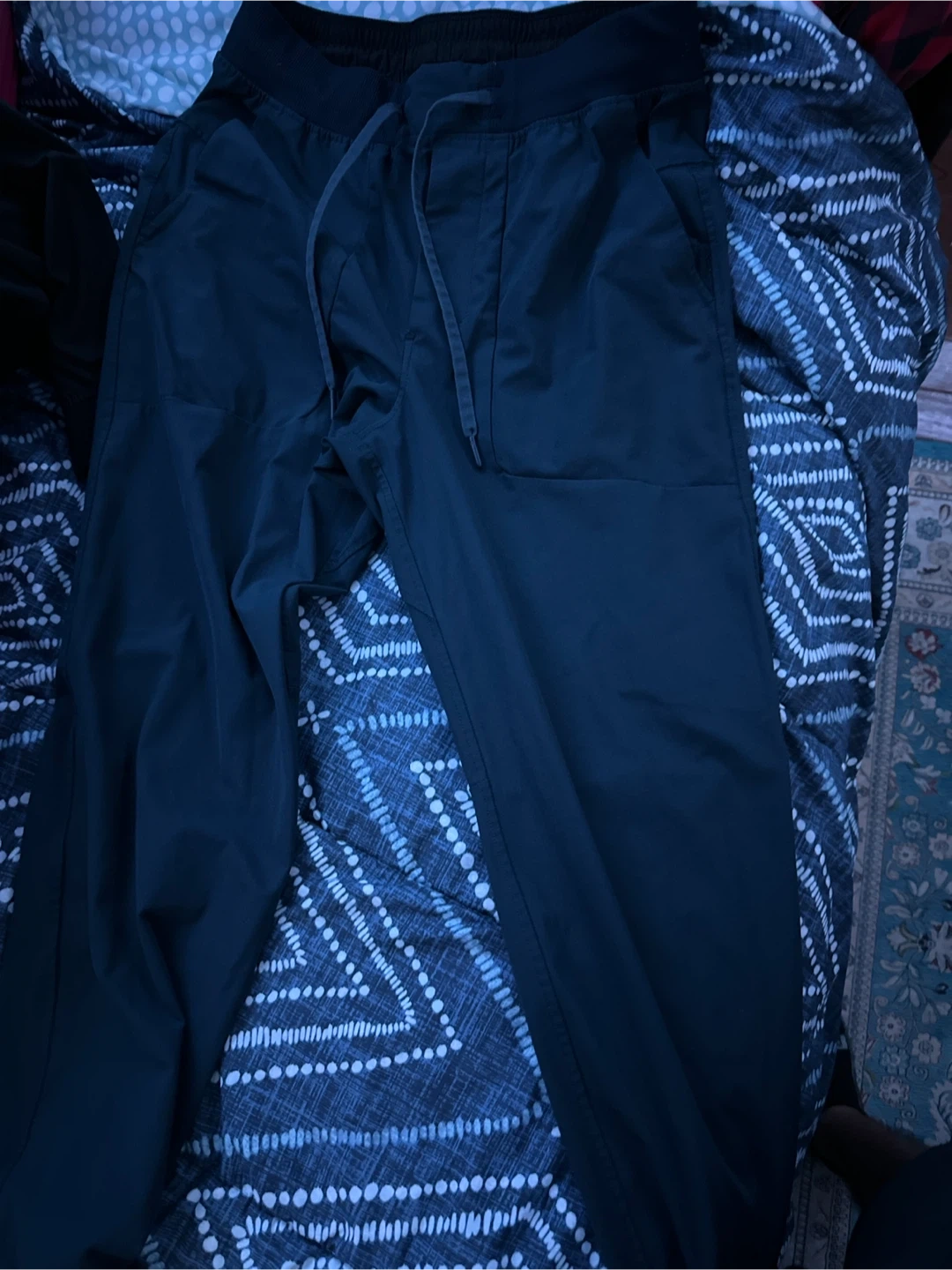 Selling a pair of lululemon jogger pants in navy blue. They are in great condition and ready for a new home! Perfect for work or casual wear