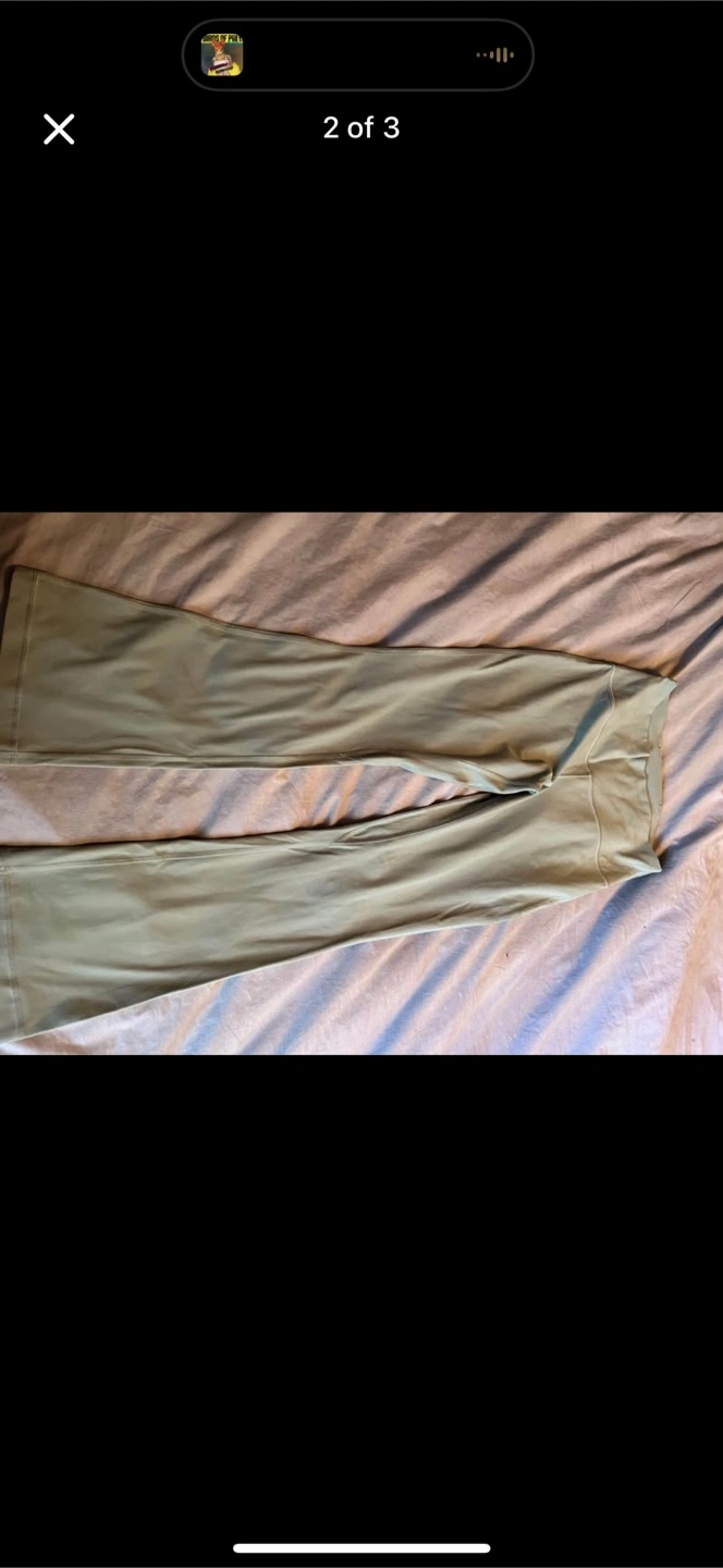 Selling a pair of Lululemon Align High-Rise Mini Flare Pants! These are super comfy and in great condition. They're a lovely light green colour, perfect for yoga or just lounging around. Size 10, short
