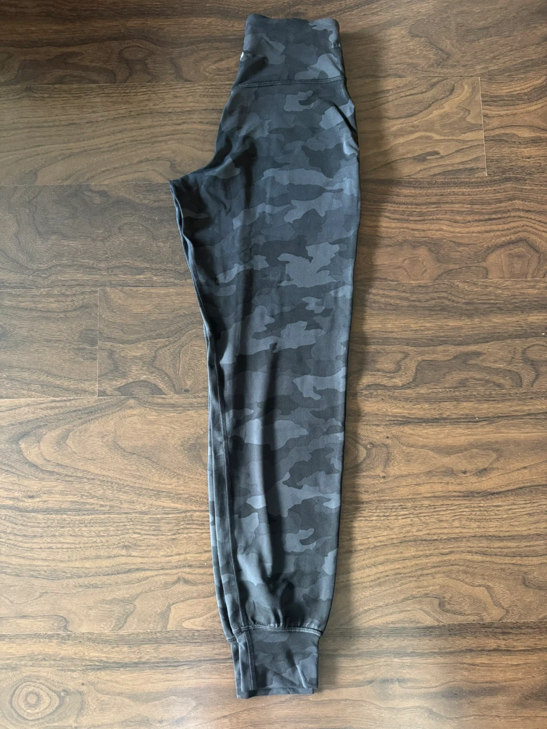 Selling a pair of Lululemon Align Joggers in a cool camo pattern! They're a size 4 and in great condition. Almost Brand new Super comfy for lounging or working out. These are the 28" length, perfect for a bit of extra coverage Size 4 = S