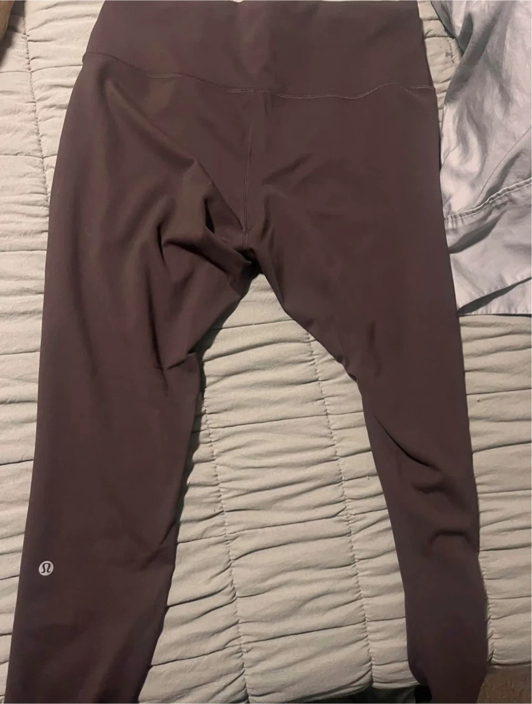 Selling a pair of Lululemon Align leggings in a lovely brown colour. They're super comfy and in great shape! Perfect for yoga, running errands, or just lounging around the house. The size dot is not visible, so please refer to measurements in photos for sizing.