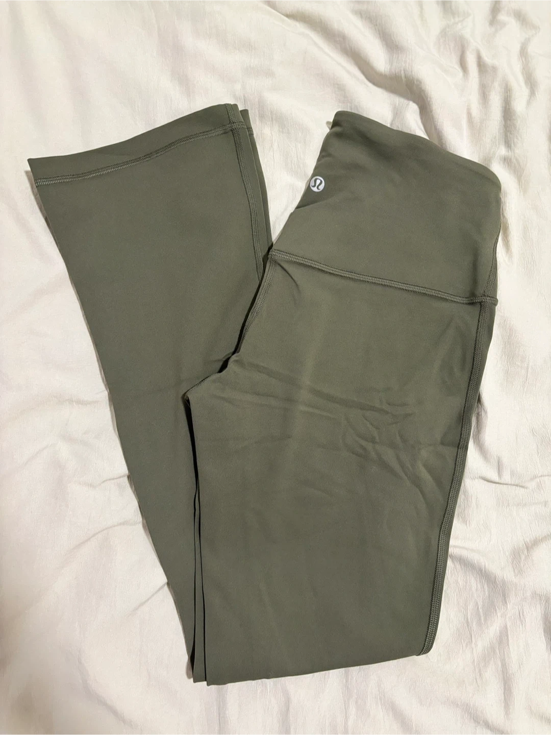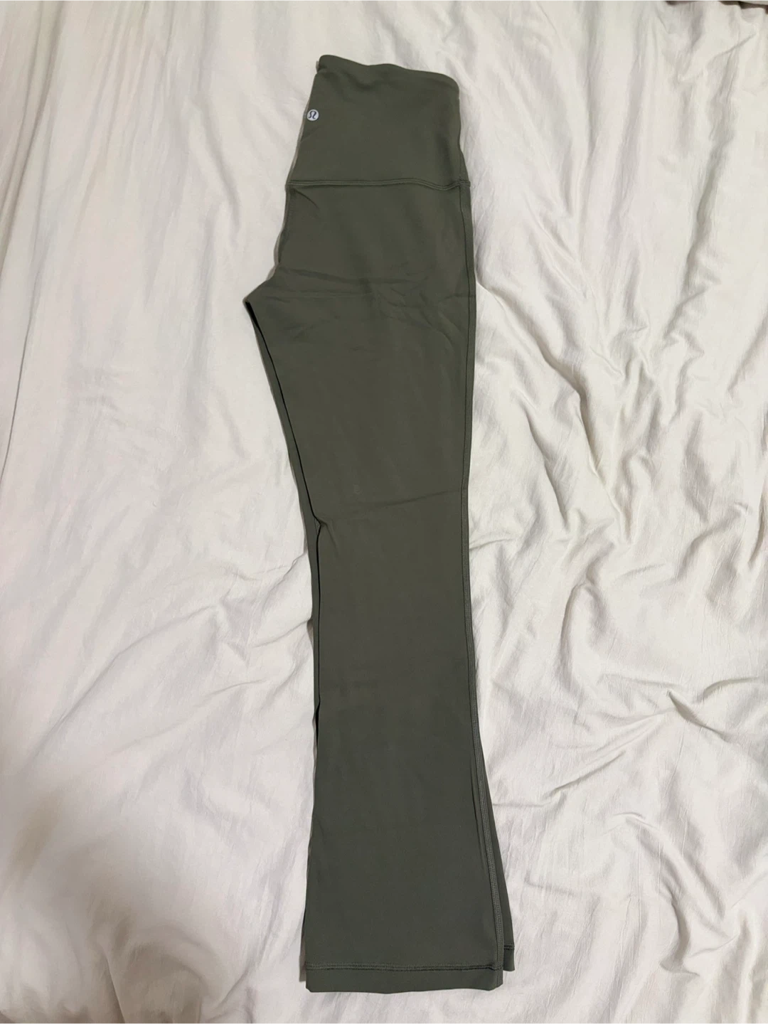 Selling a pair of Lululemon align leggings mini flare in a lovely army green colour! These pants are super comfy and in great condition. They're a size 6. If you're interested, send me a message!