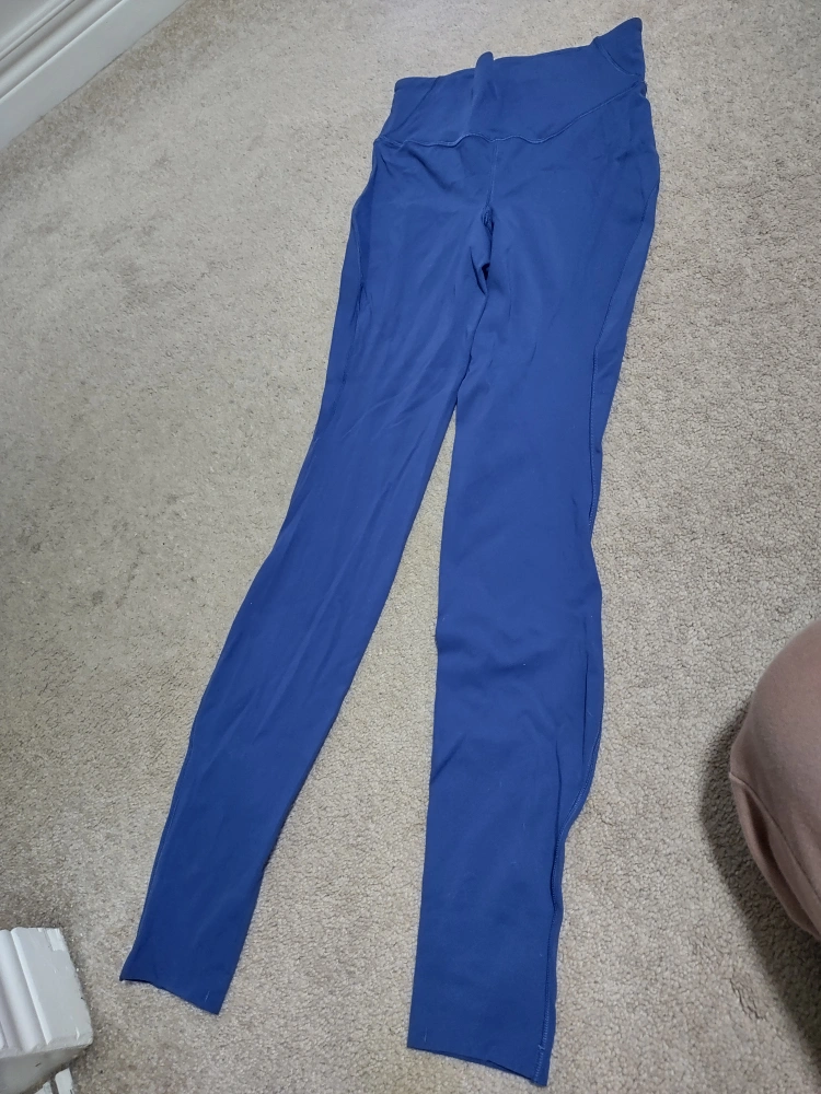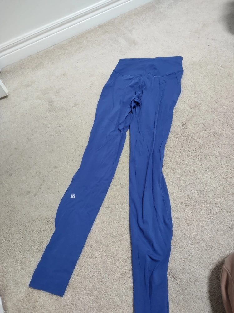 Selling a pair of Lululemon Align leggings in a lovely blue colour! They're a size 4. Brand new never worn. pickup at Eglinton and Redpath with cash payment.
