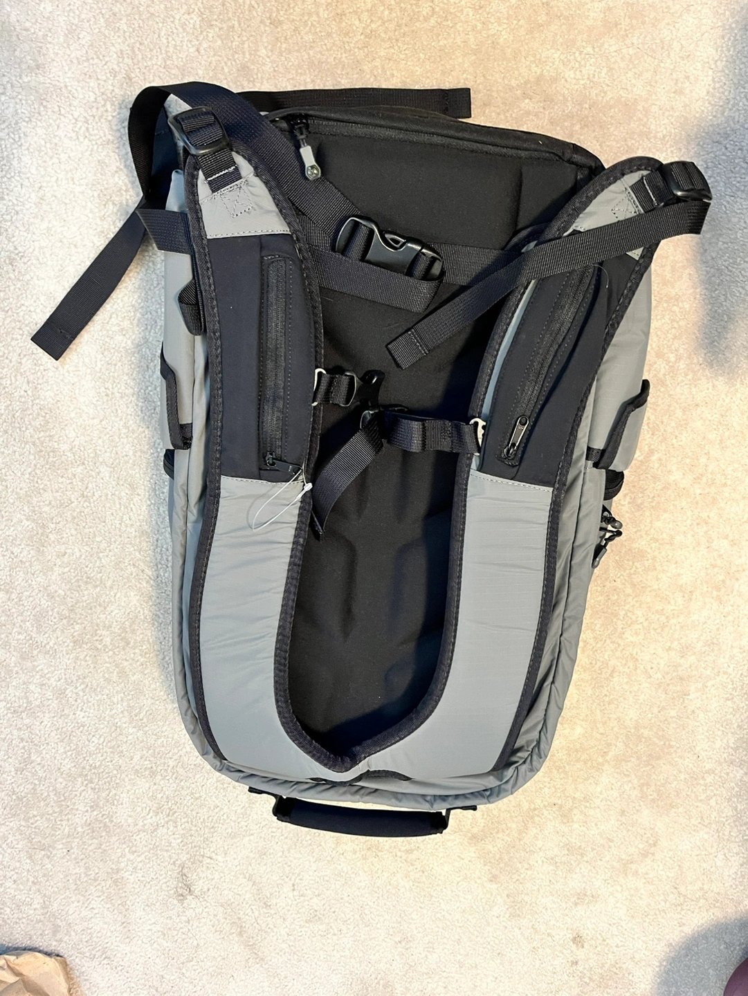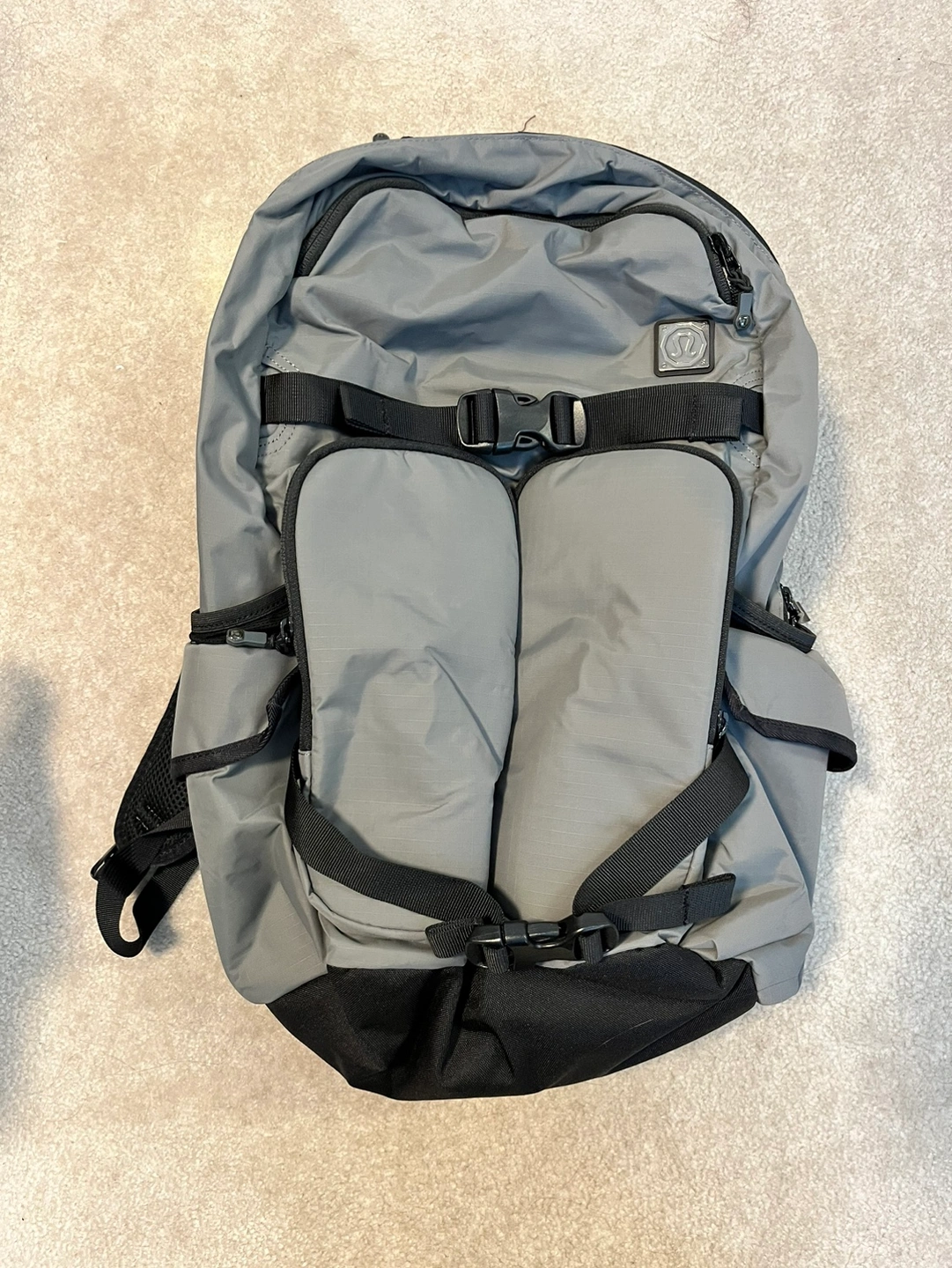Brand new lululemon Grey backpack with black accents, multiple pockets.