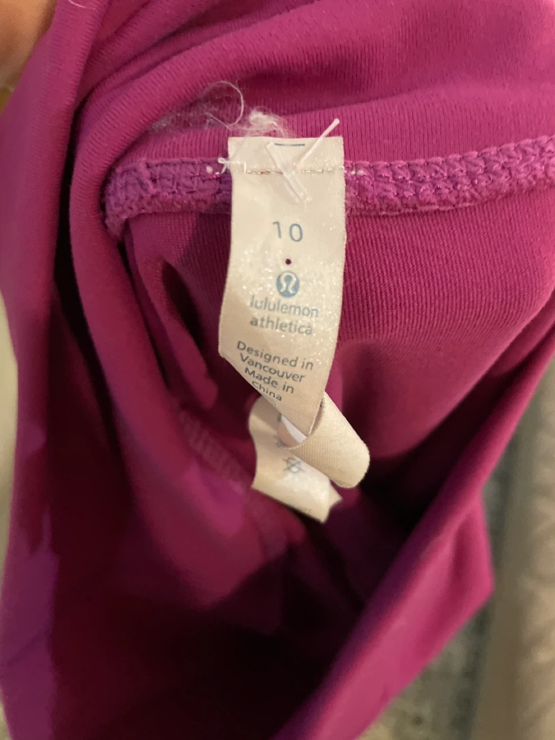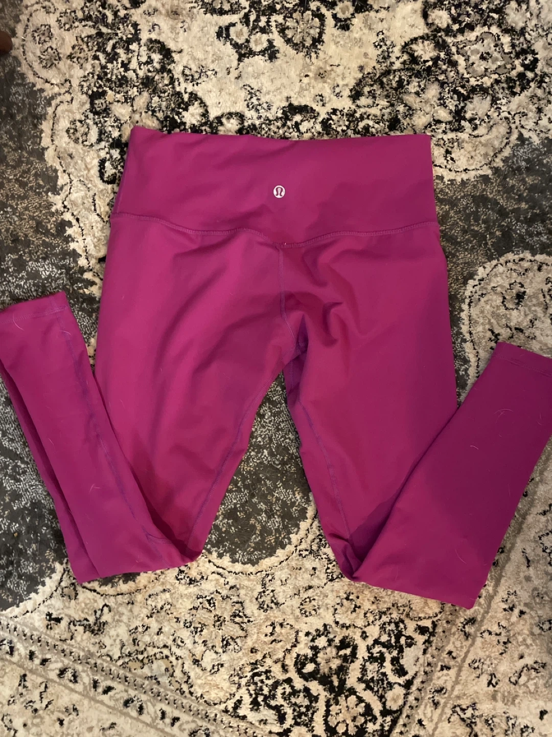 Selling a pair of Lululemon Athletica leggings in size 10! They're a vibrant magenta colour and in great condition. Perfect for workouts or just lounging around!