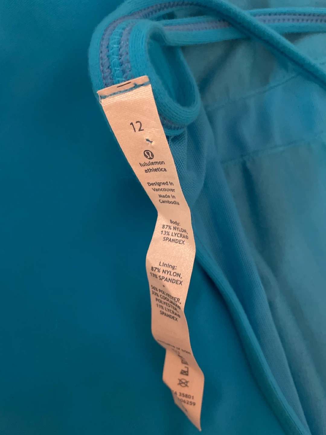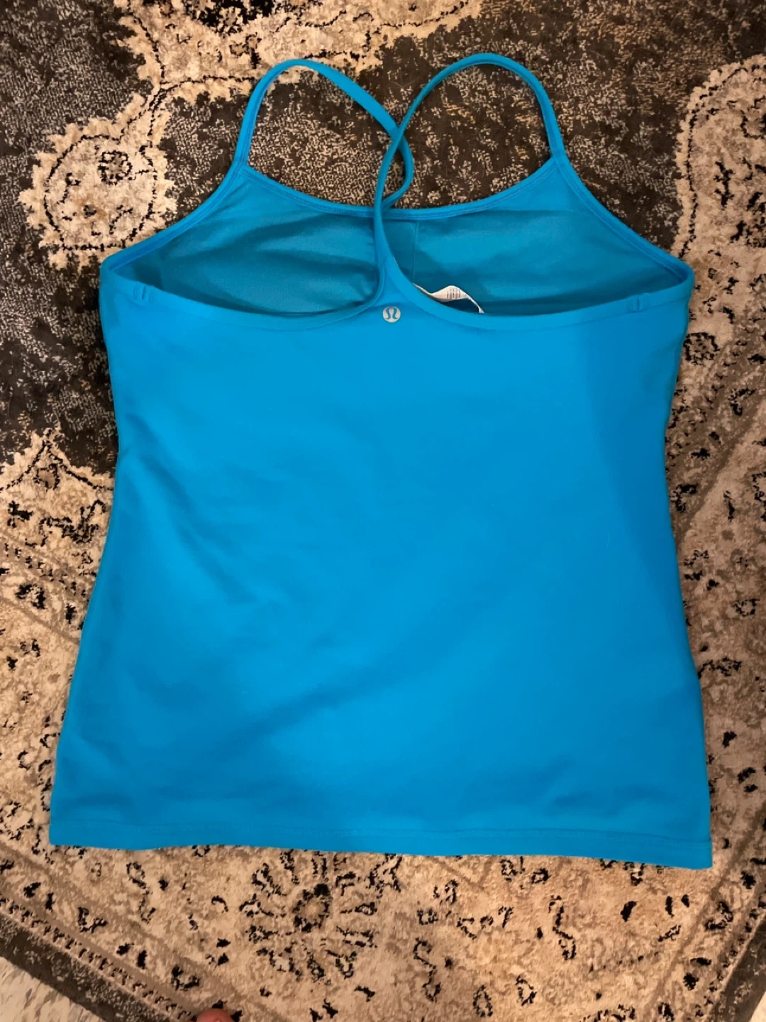 Selling a Lululemon Athletica tank top in size 12. It's a lovely blue colour and made with a blend of nylon and spandex for a comfortable fit. Perfect for workouts or casual wear