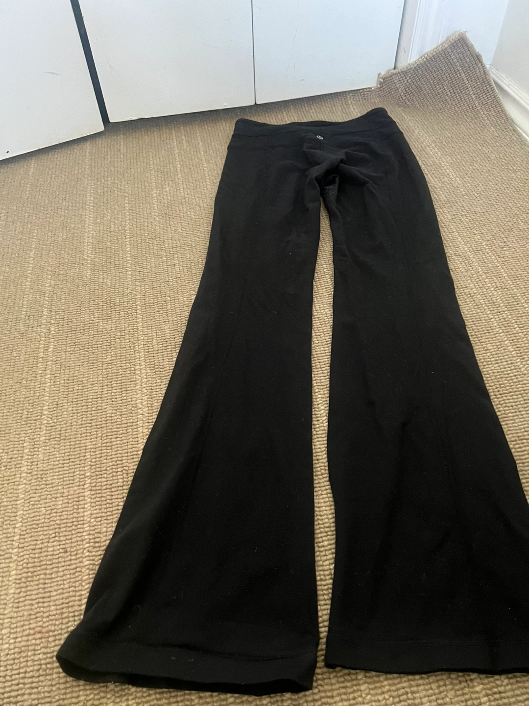 Selling a pair of Lululemon black flare pants. They're in great shape and ready for a new home! Perfect for yoga or just lounging around