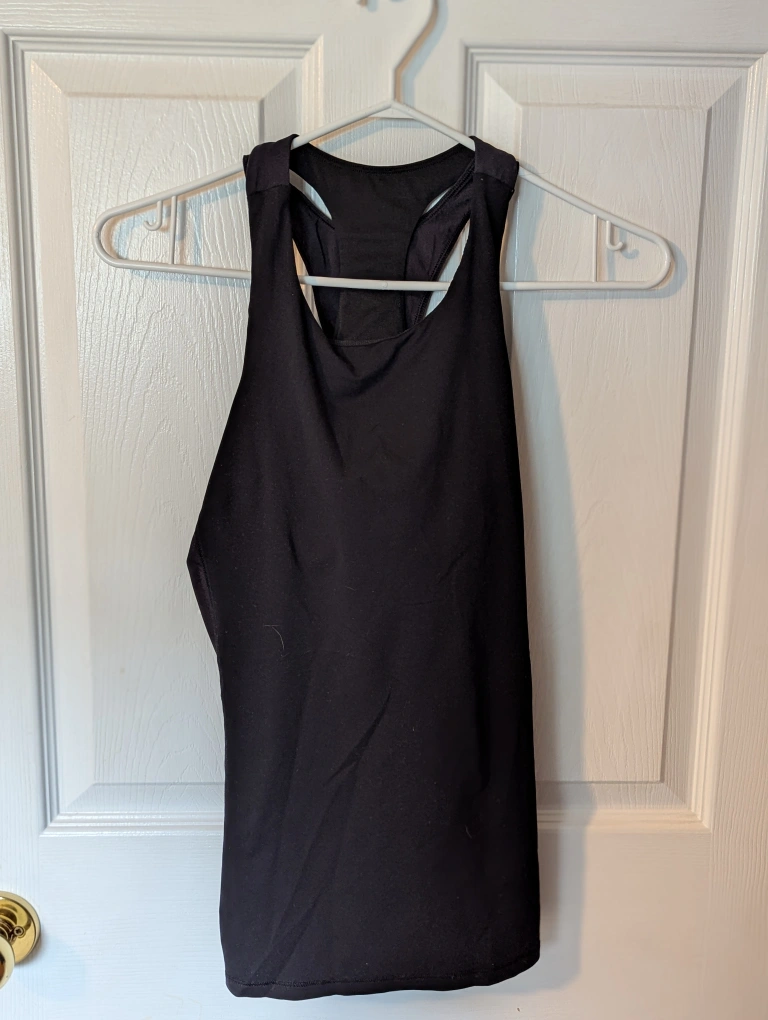 Black racerback tank top. Workout wear. Mesh back detail. Great for the gym or casual wear. Size 6