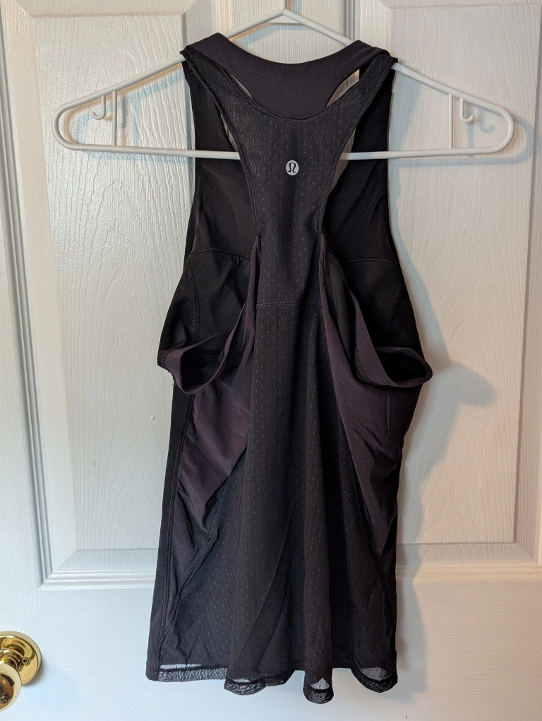 Show allBlack racerback tank top. Workout wear. Mesh back detail. Great for the gym or casual wear. Size 6