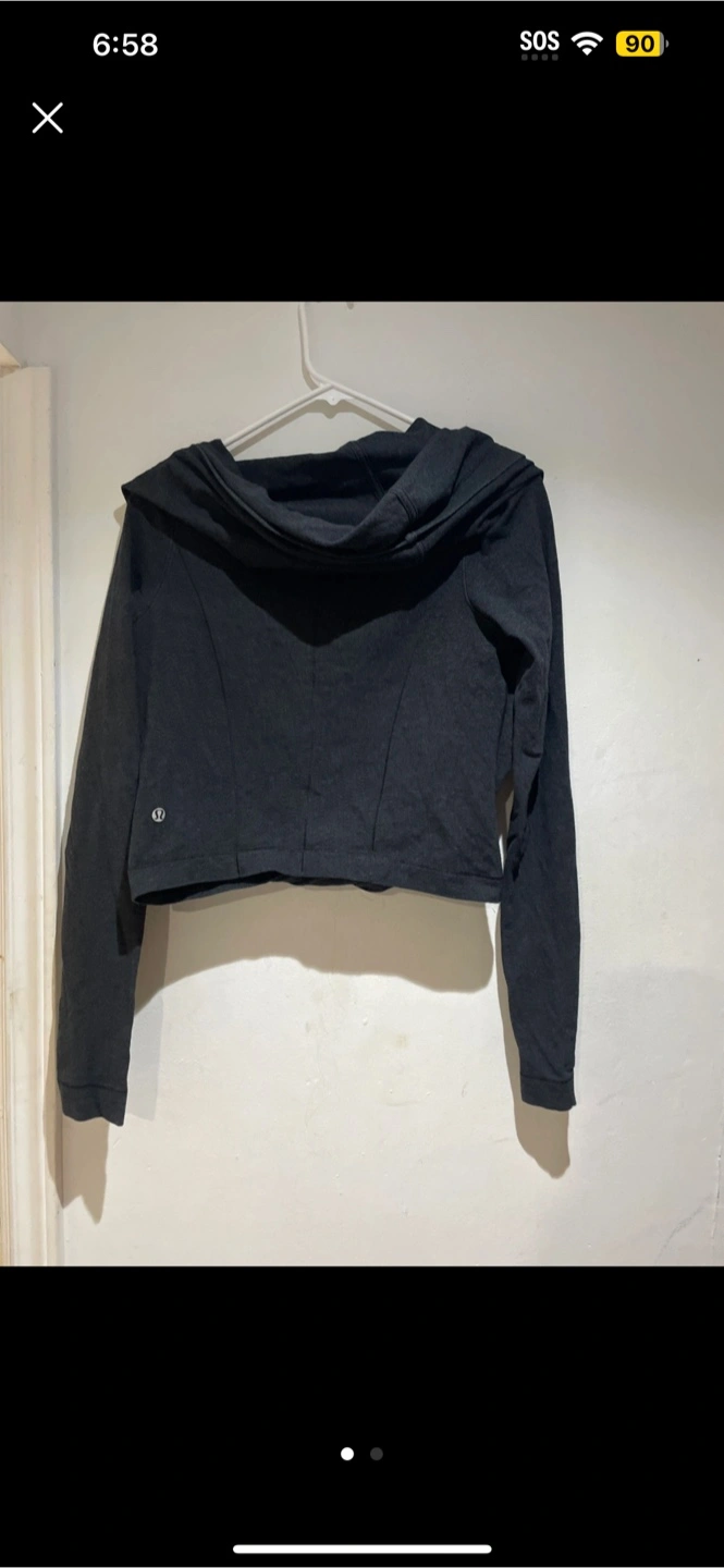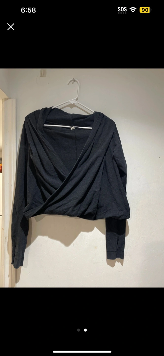 Selling a Lululemon black wrap top. It’s in great condition and perfect for layering or wearing on its own. The wrap design is super flattering!