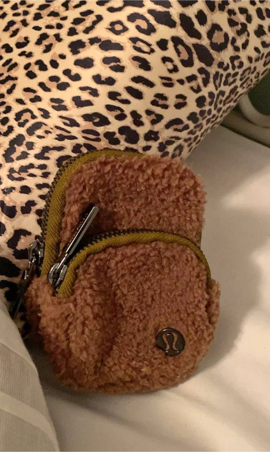 Super cute Lululemon keychain pouch in a cozy brown fleece material! Perfect for holding your keys, cards, or other small essentials