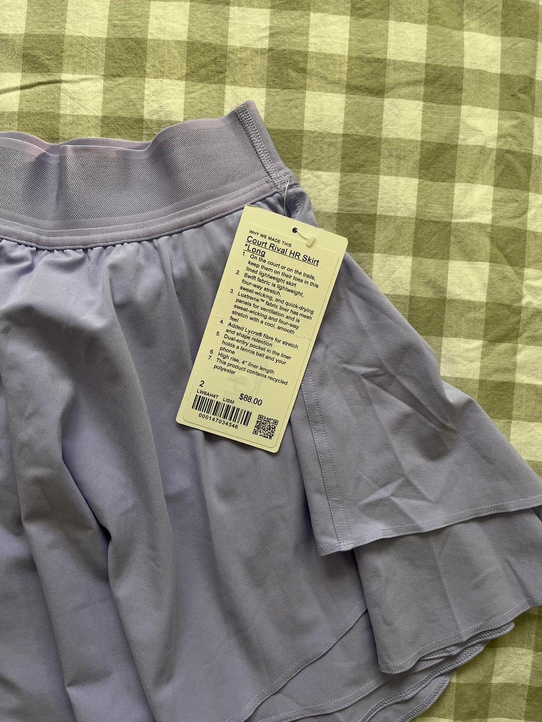 Brand new with tag Originally $88 Lululemon Court Rival HR Skirt *Long Size 2 Lilac Smoke / Lavender