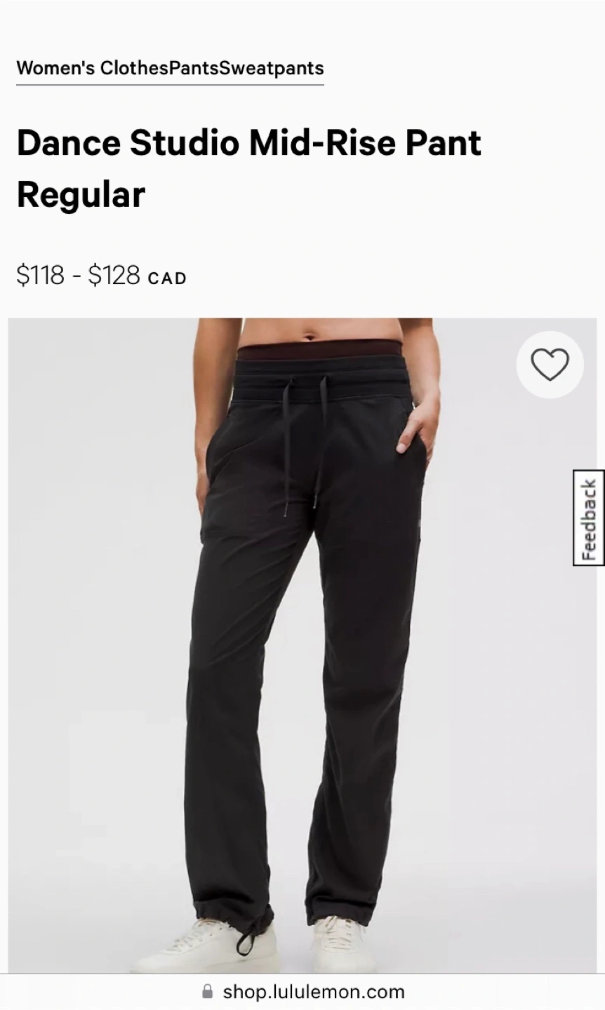 Black Lululemon Dance Studio Mid-Rise pants. Size 12 Regular. Brand new without tags (tag removed but plastic connector piece thing still attached lol) Bought last year and never wore, found them in closet clean out and no longer fit. $90 - retail for $110 plus tax Pickup Kanata