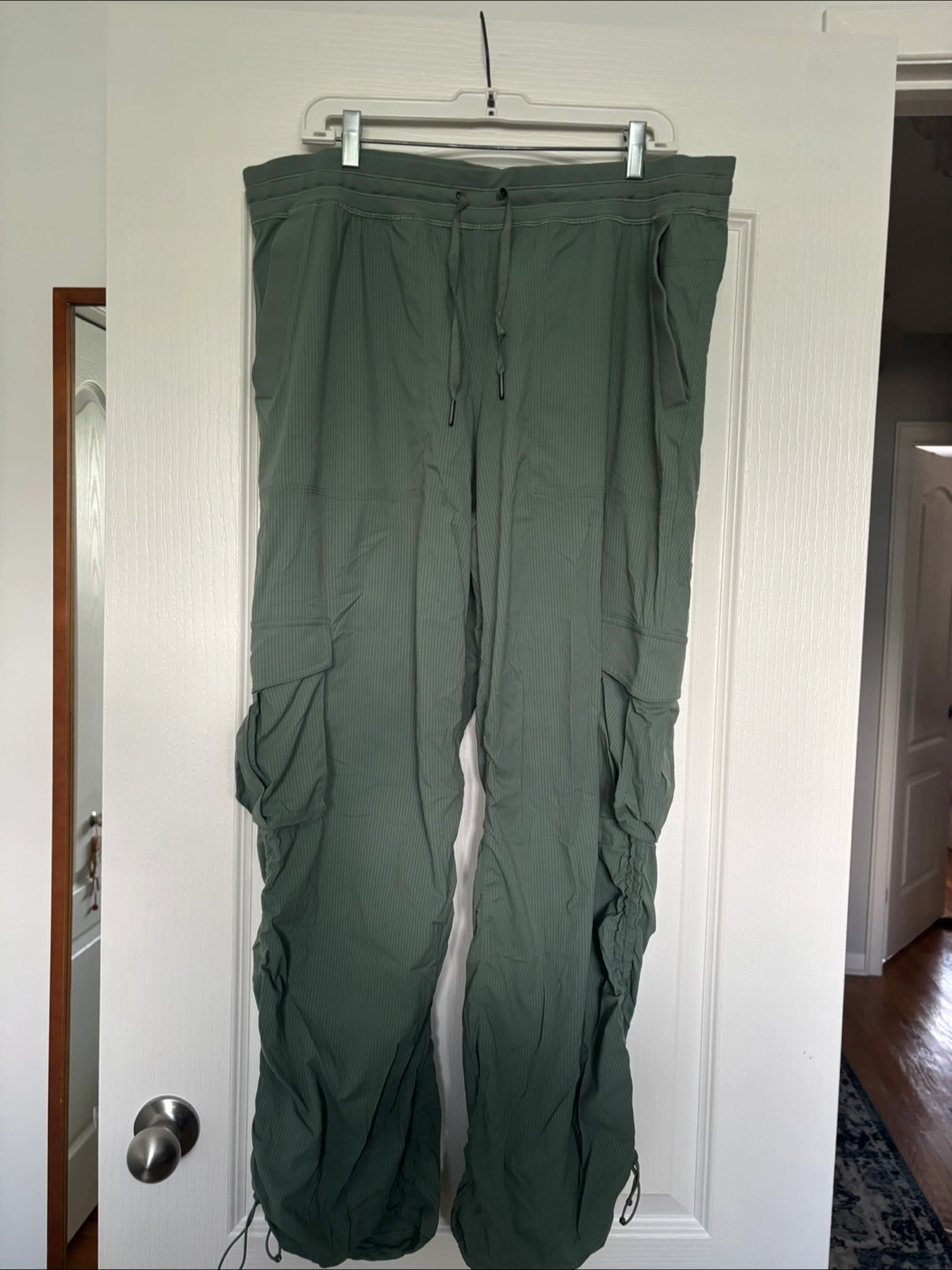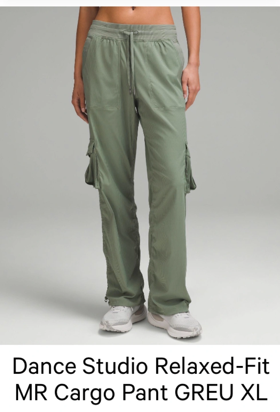 These Lululemon Dance Studio Relaxed-Fit MR Cargo Pants are in great condition! They're a size XL and come in the grey eucalyptus colour. Perfect for dance or just lounging around! Retail for 138+ tax