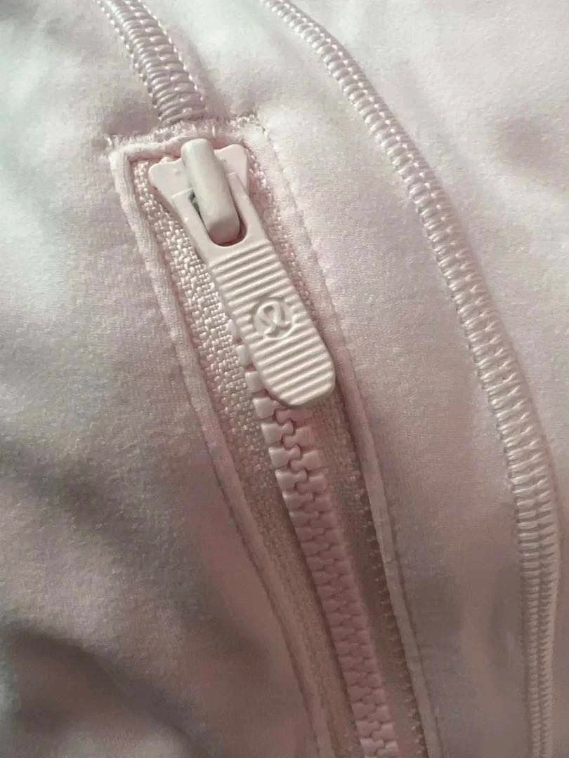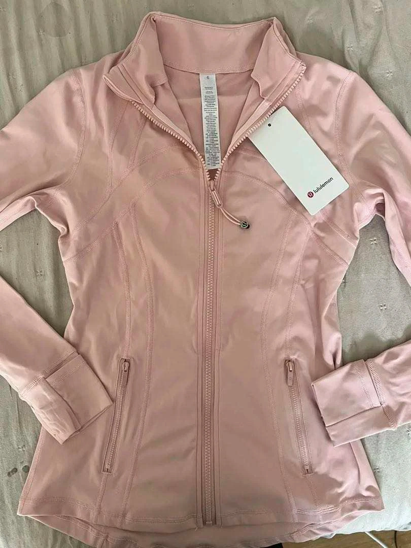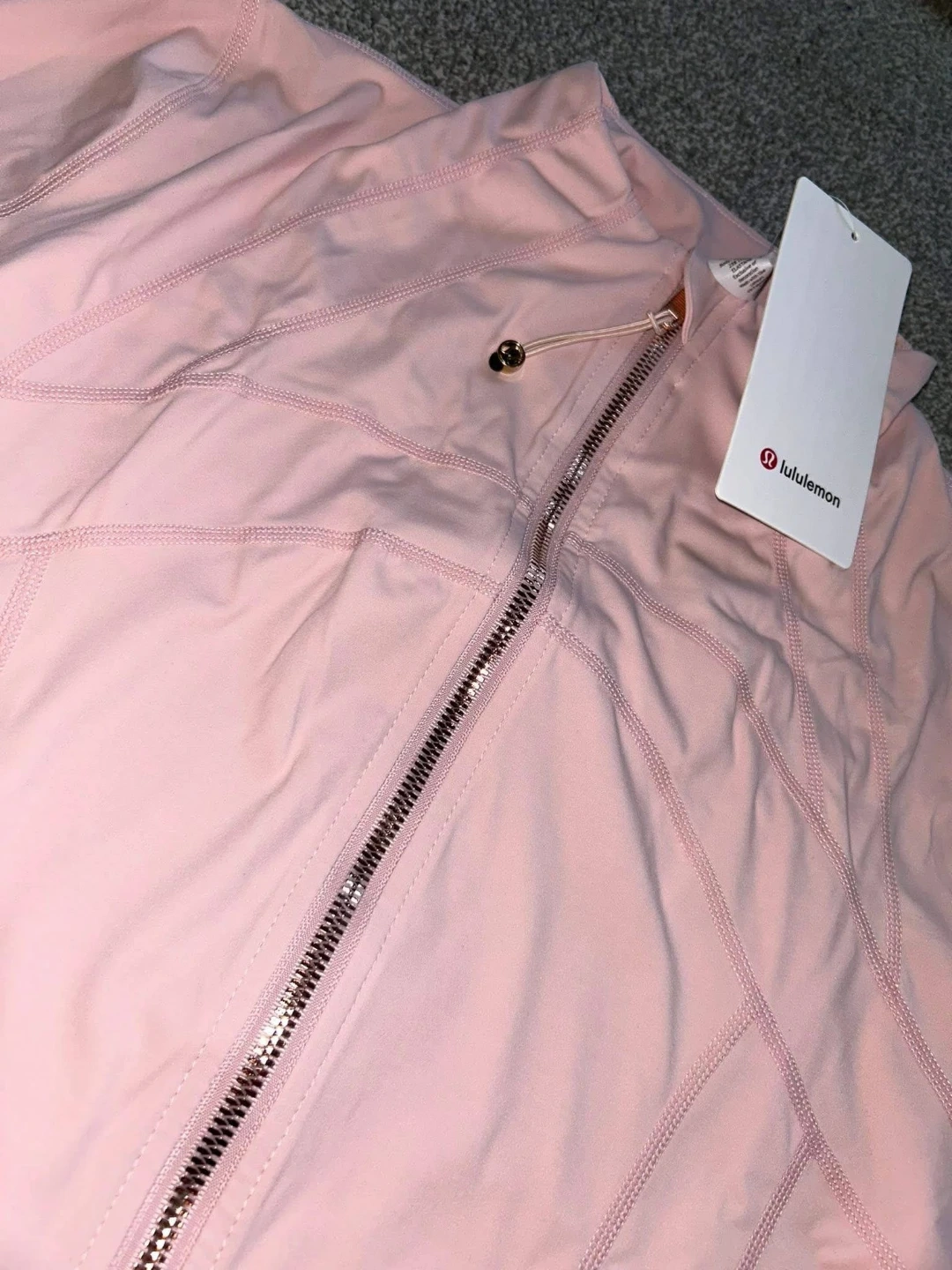 Lululemon Define Jacket, size small. Pale pink colour. Full zip closure. Two zippered pockets. Excellent condition. Rose gold zipper and hardware. meetups or shipping
