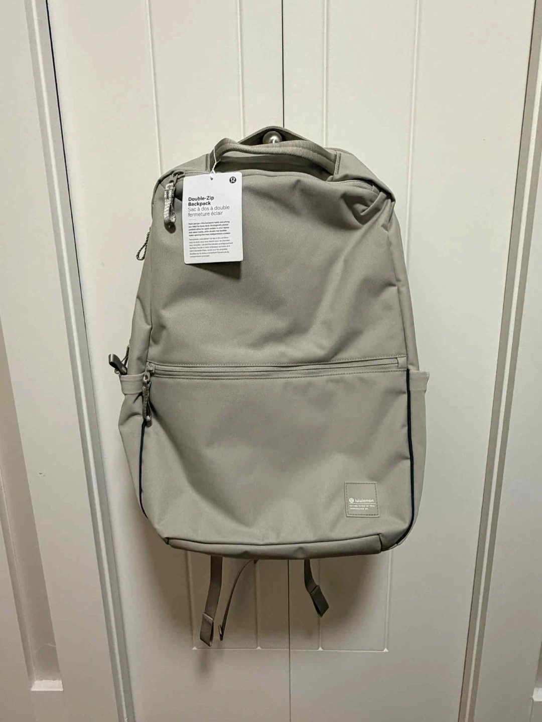 Selling a Lululemon Double Zip Backpack in a lovely light grey colour! It's in great condition and ready for a new owner. Perfect for everyday use, travel, or hitting the gym. The double zip design makes it super practical, and it's got plenty of room for all your essentials