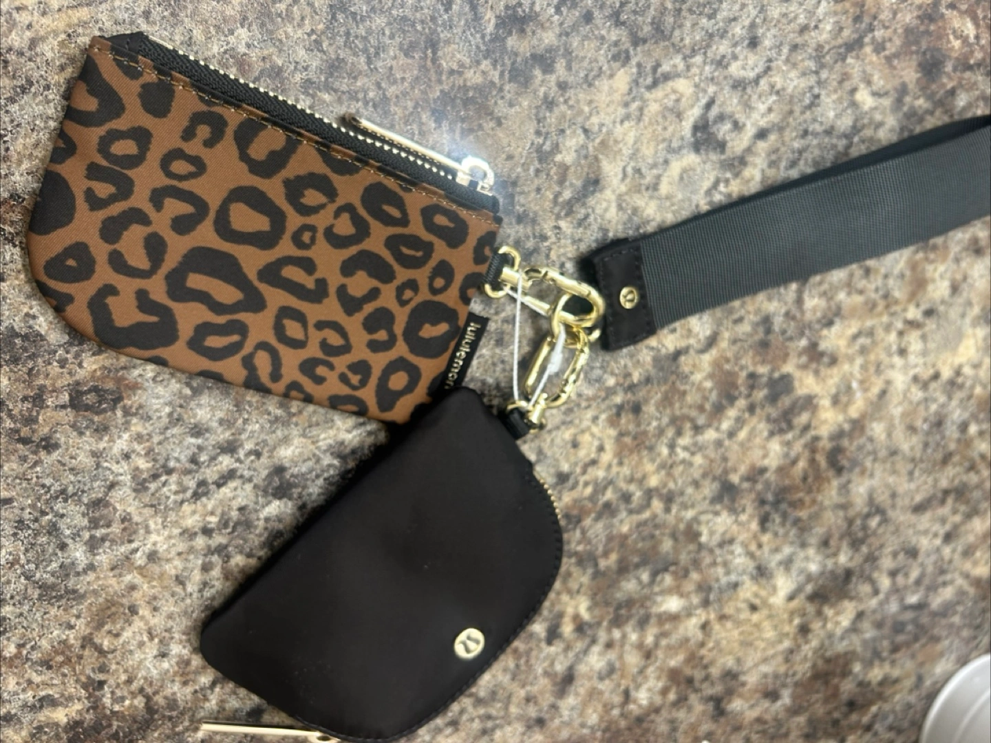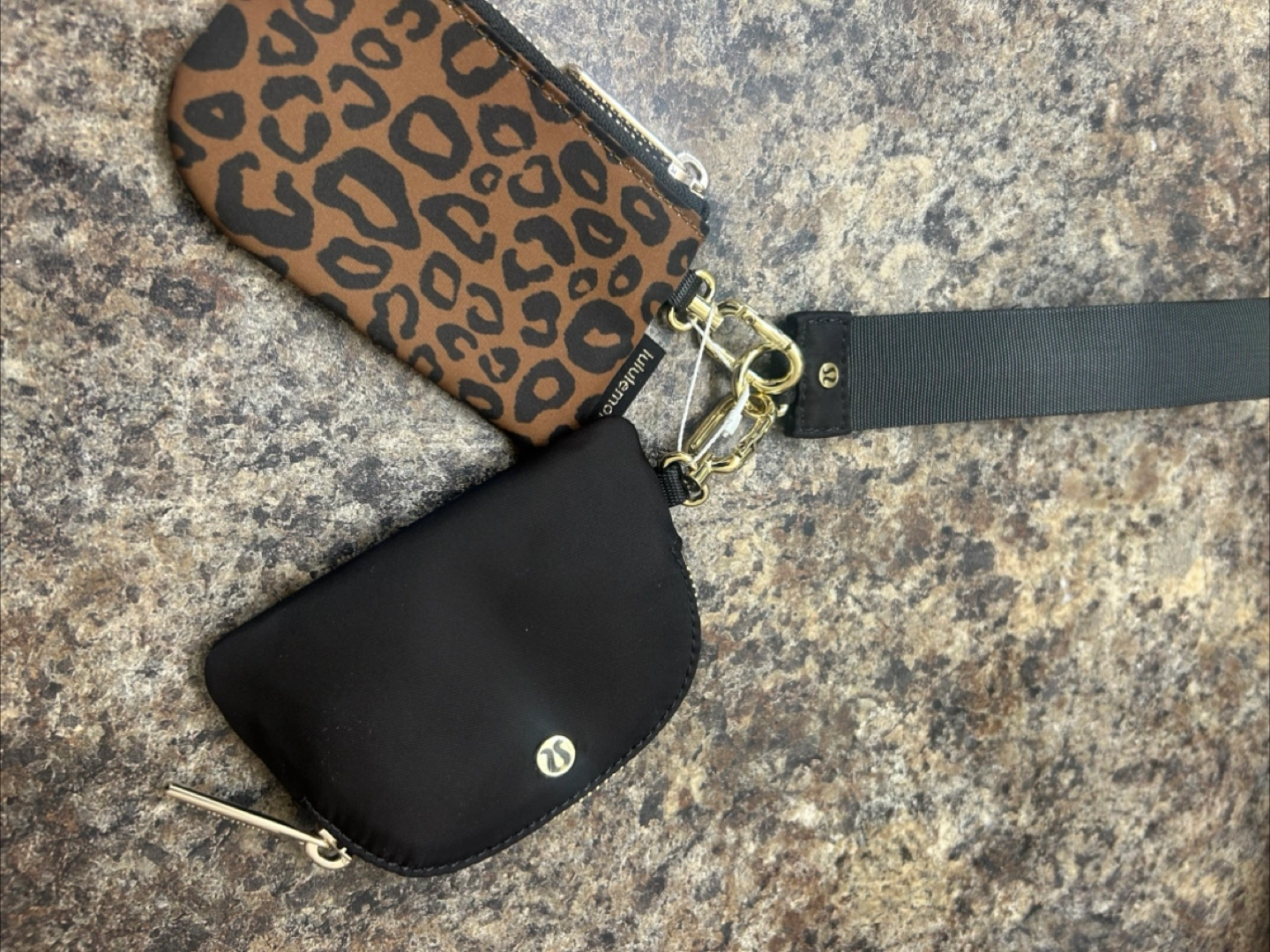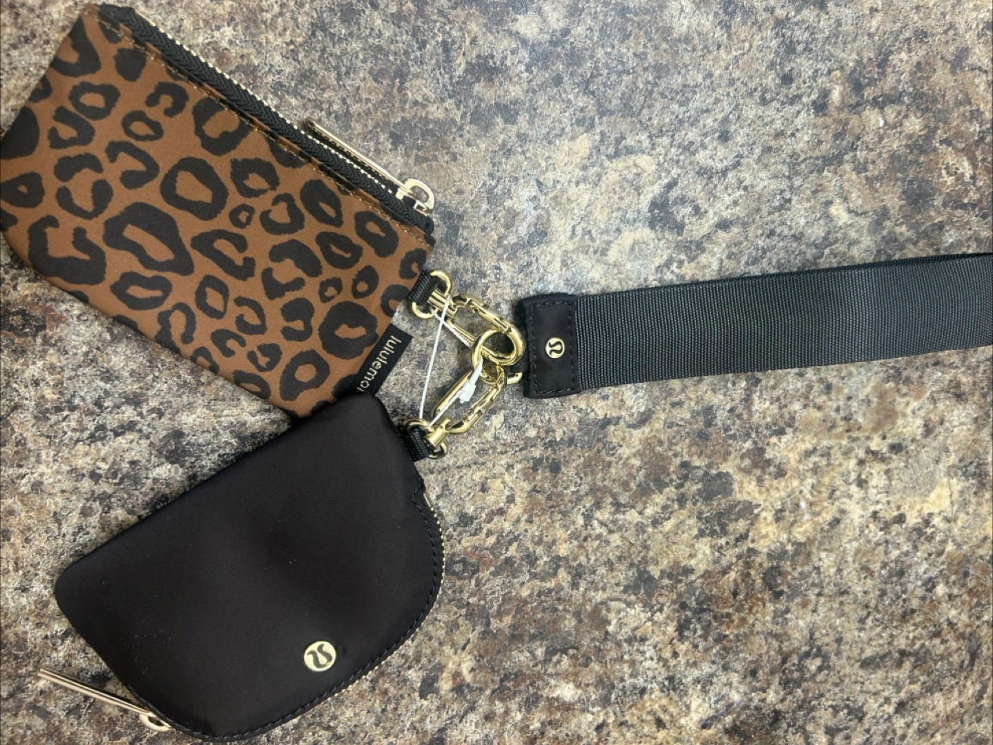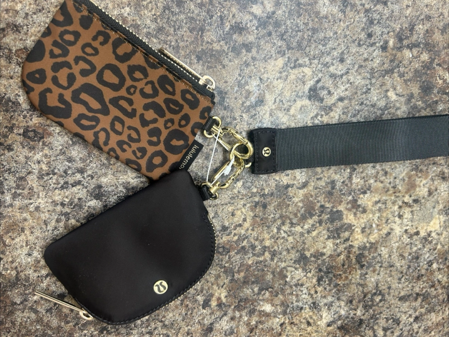 This Lululemon Dual Pouch Wristlet is in great condition! It's perfect for carrying your essentials. One pouch is black and the other features a fun leopard print(delivery= contact me