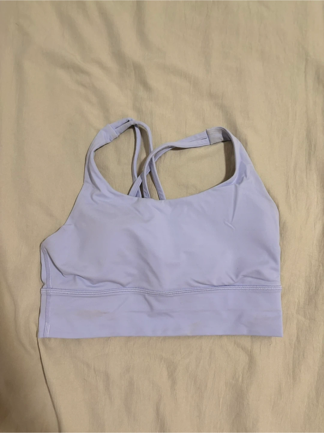 Selling a Lululemon sports bra in a lovely light purple colour! It's in great condition and ready for a new home. Perfect for your workouts or everyday wear. Colour Cool breeze.