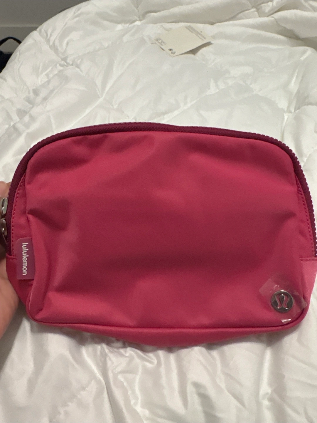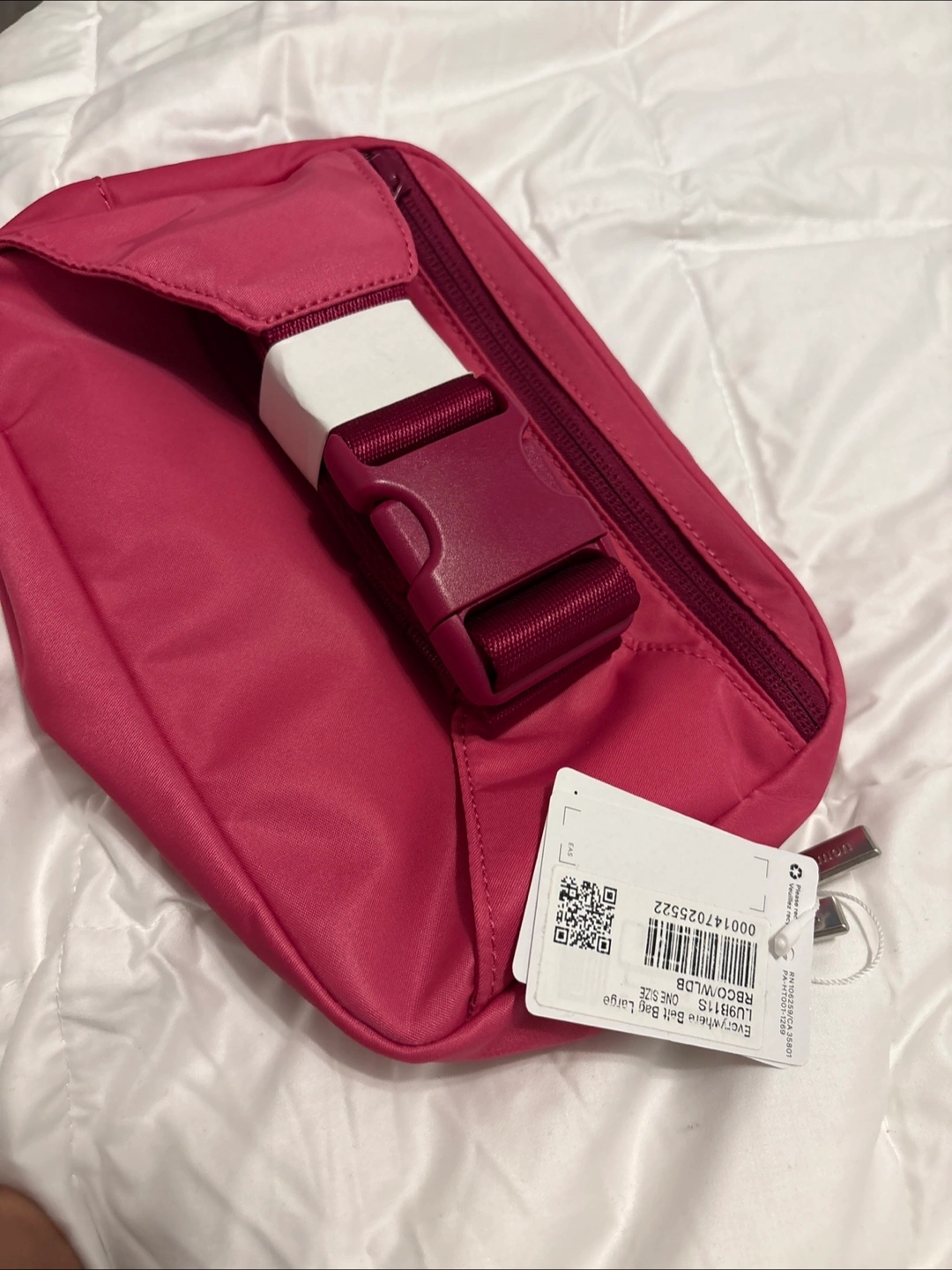 Large pink belt bag. Adjustable strap. Zipper closure. Perfect for carrying essentials.