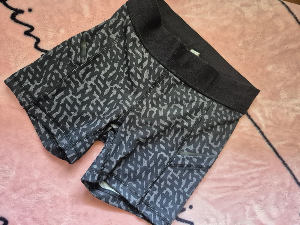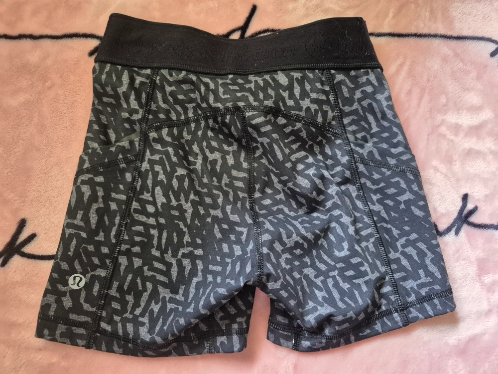Shorts with a black and grey print pattern. Feature side pockets. A black waistband. These shorts are great for staying active in a comfy way.