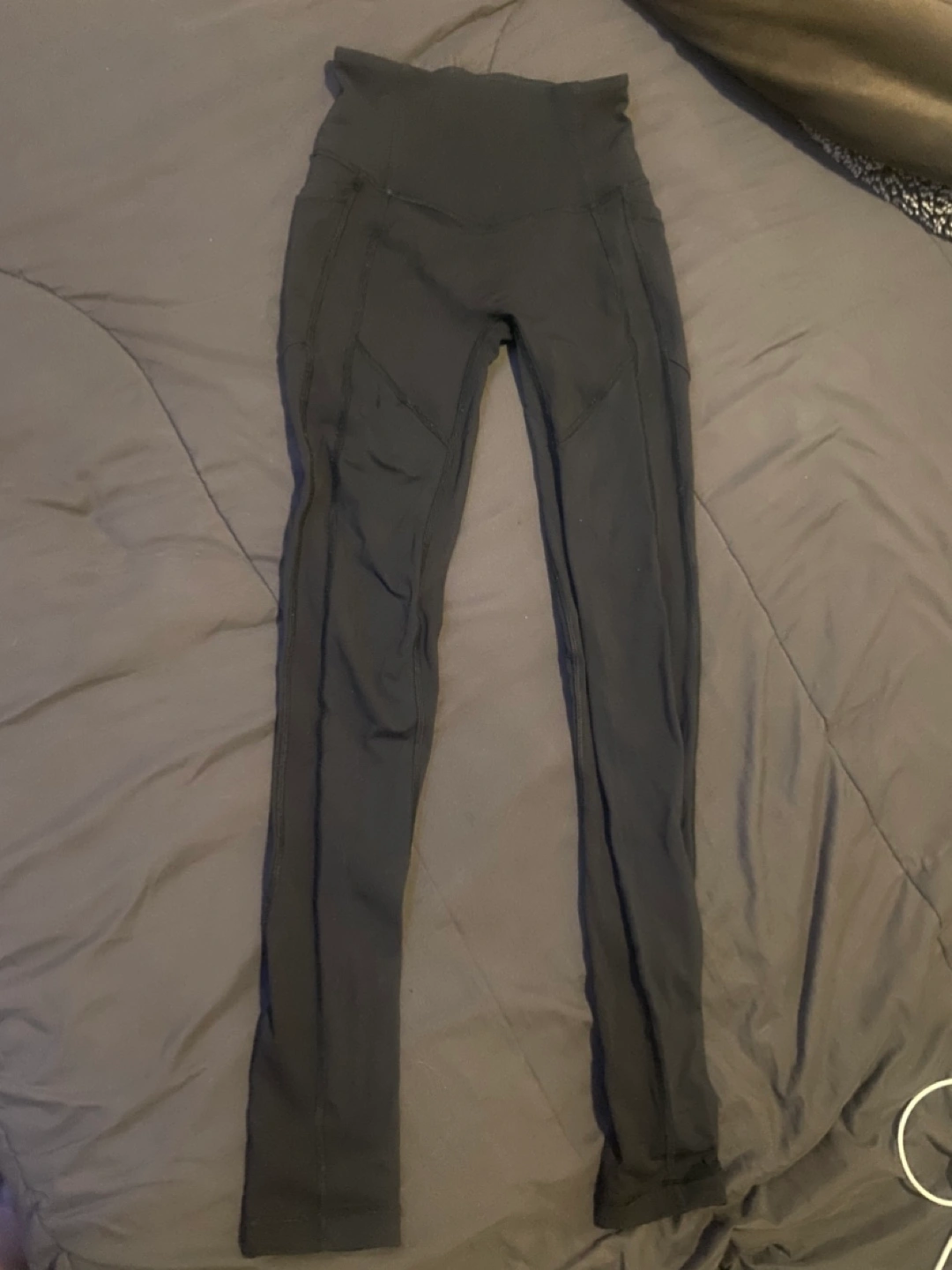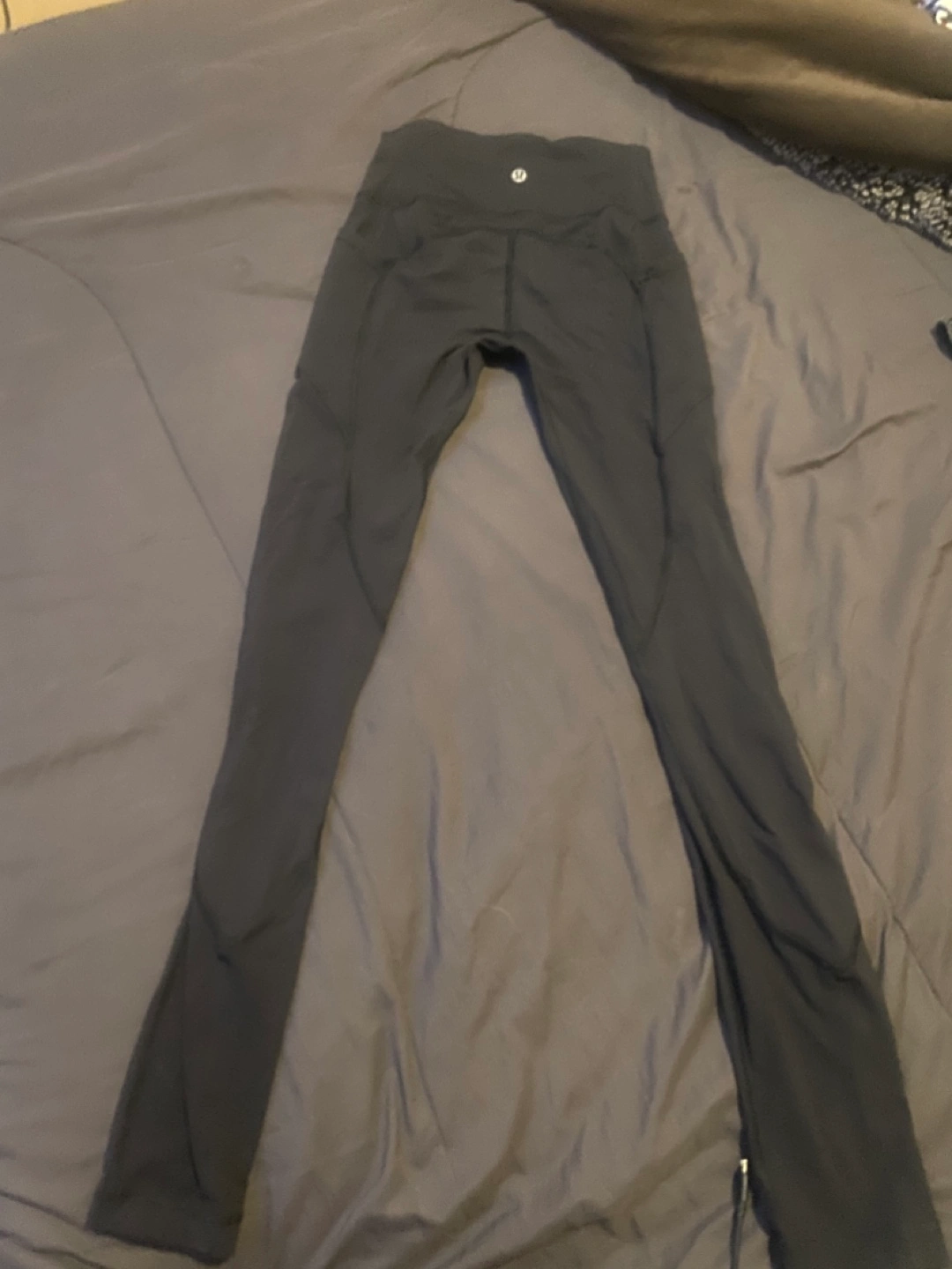 black high rise align lululemon leggings with pockets full length size 2. two tiny rips on front and minor rip on one of the pockets. still good condition otherwise