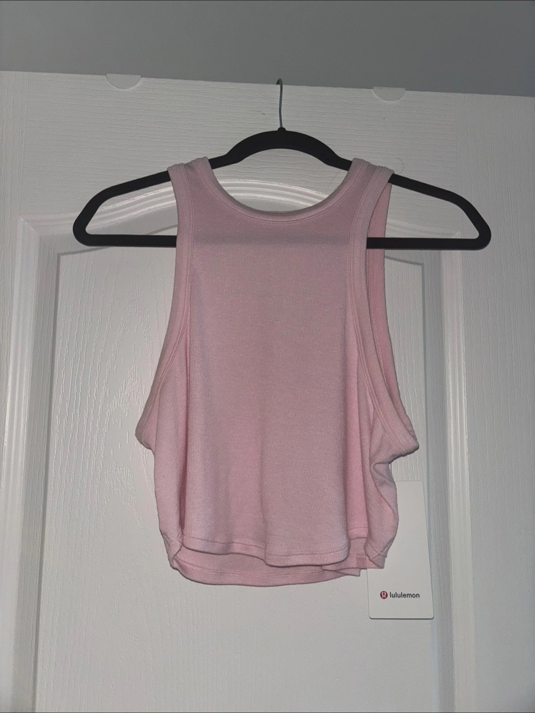 Selling a Lululemon Hold Tight Cropped Crewneck in size 10 and in a lovely light pink colour. This tank is perfect for workouts or everyday wear. It's in brand new condition with tags and ready for a new home!