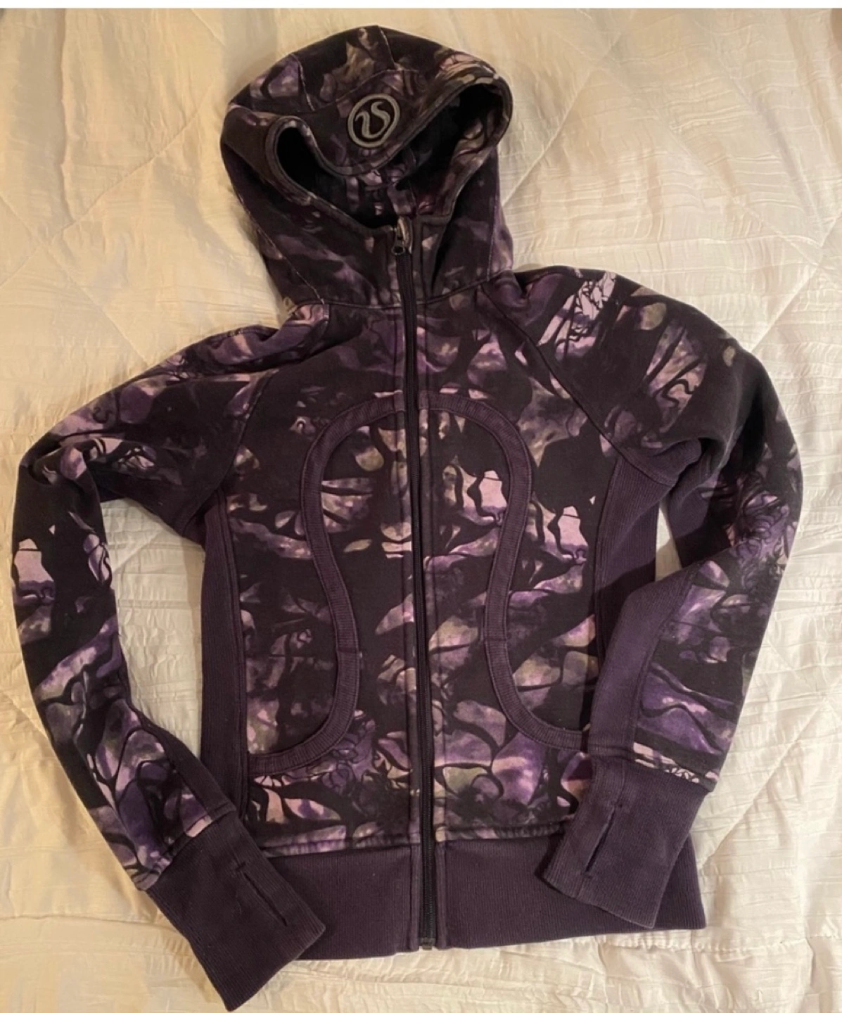 Lululemon Hoodie in size 4, only worn once. Sadly I gained weight and no matter how hard I try I cannot seem to get back there. Gorgeous limited edition pattern!