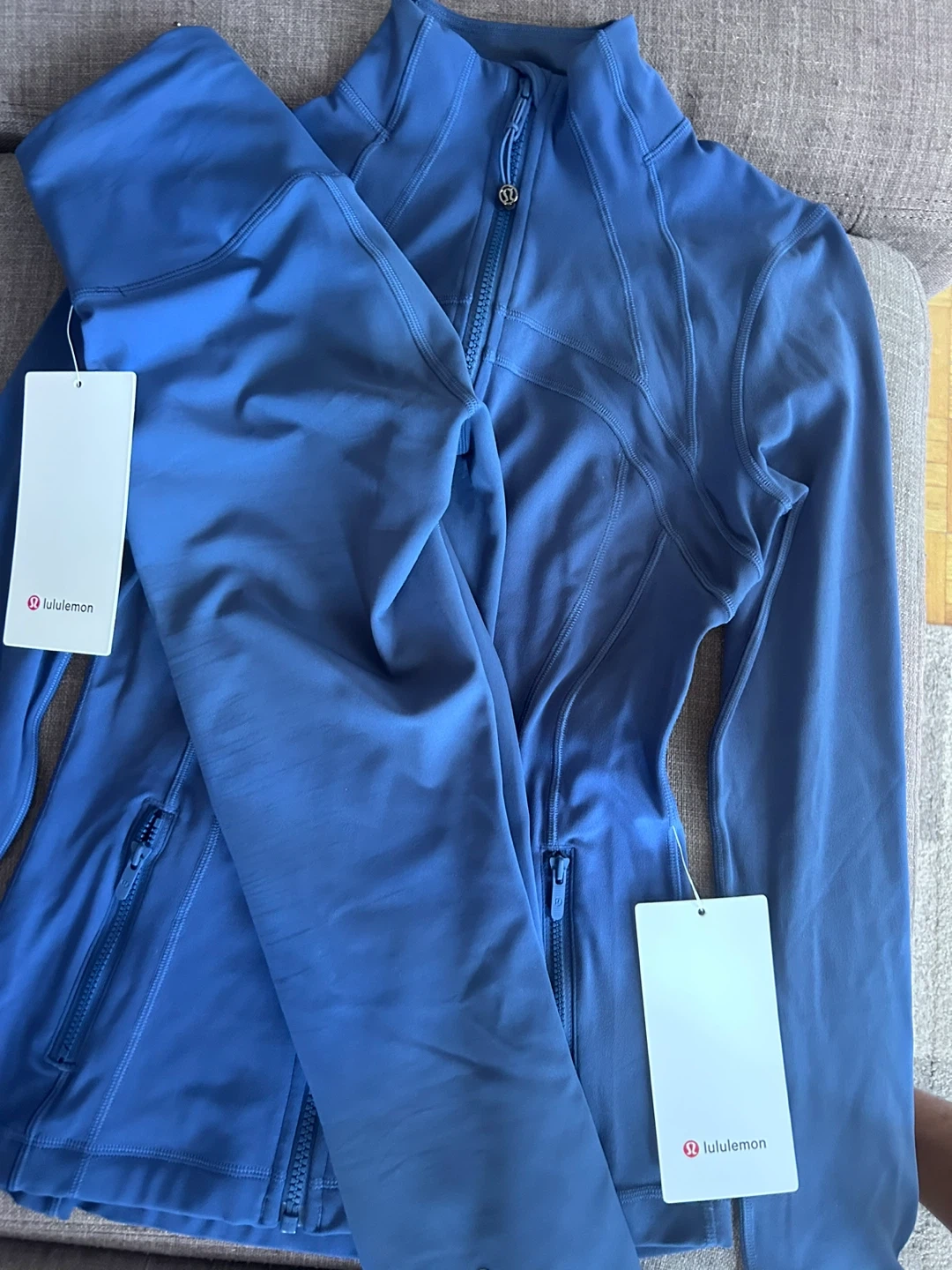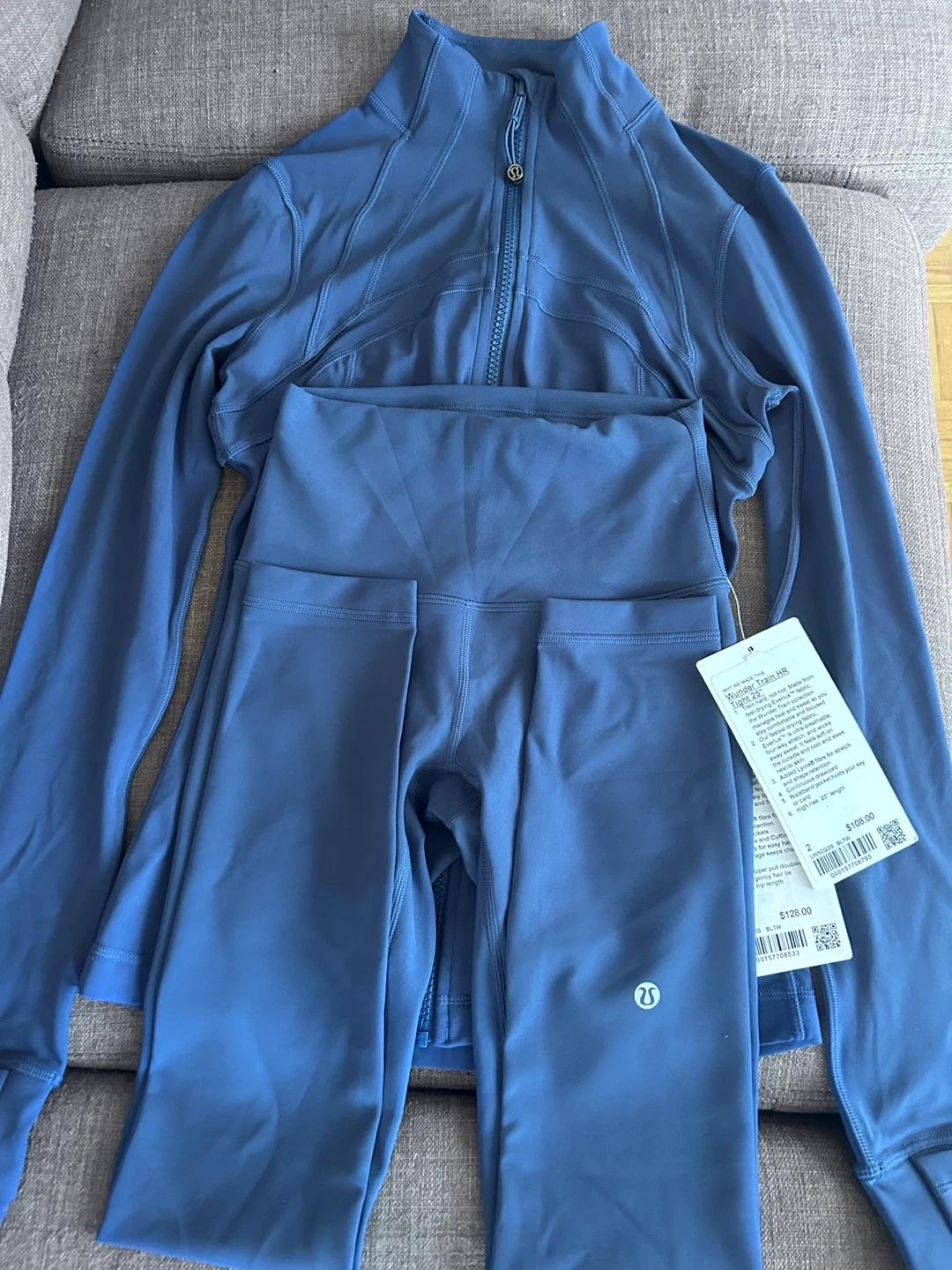 Selling a cute Lululemon set in a lovely blue colour! Includes a jacket and matching leggings. This set is perfect for workouts or just lounging around.