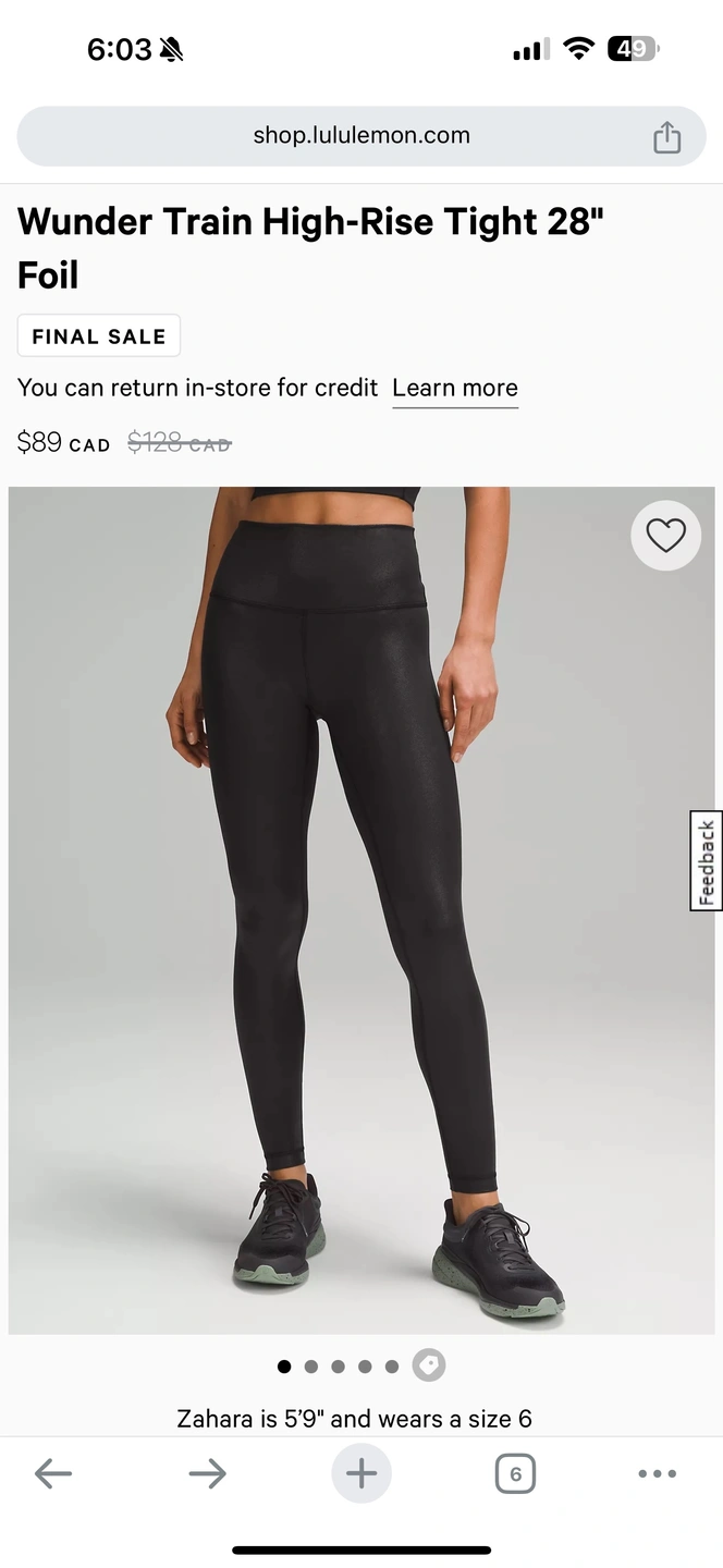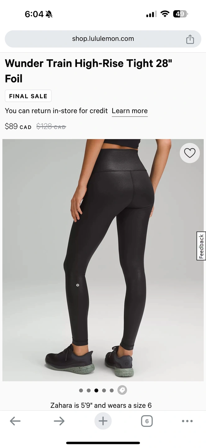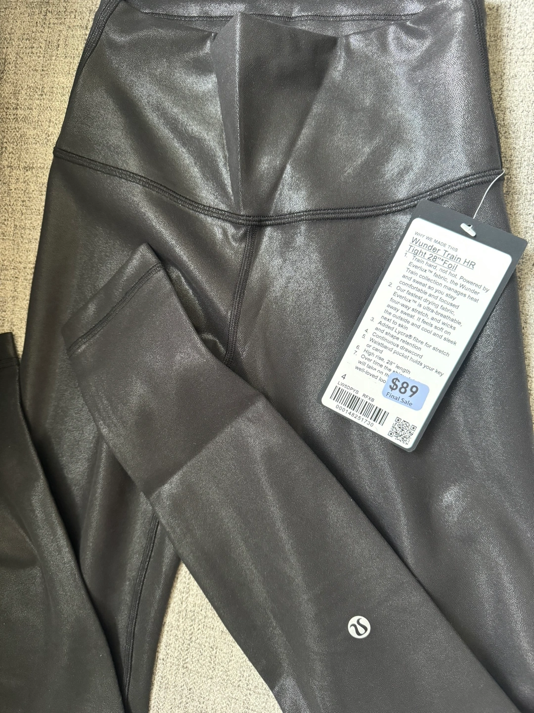 Lululemon wunder train hr 28” foil. Bnwt!! Bought for 89$+tax. Size 4. From sfpf home! Porch pick up available. Price is slightly negotiable if sure buyer!