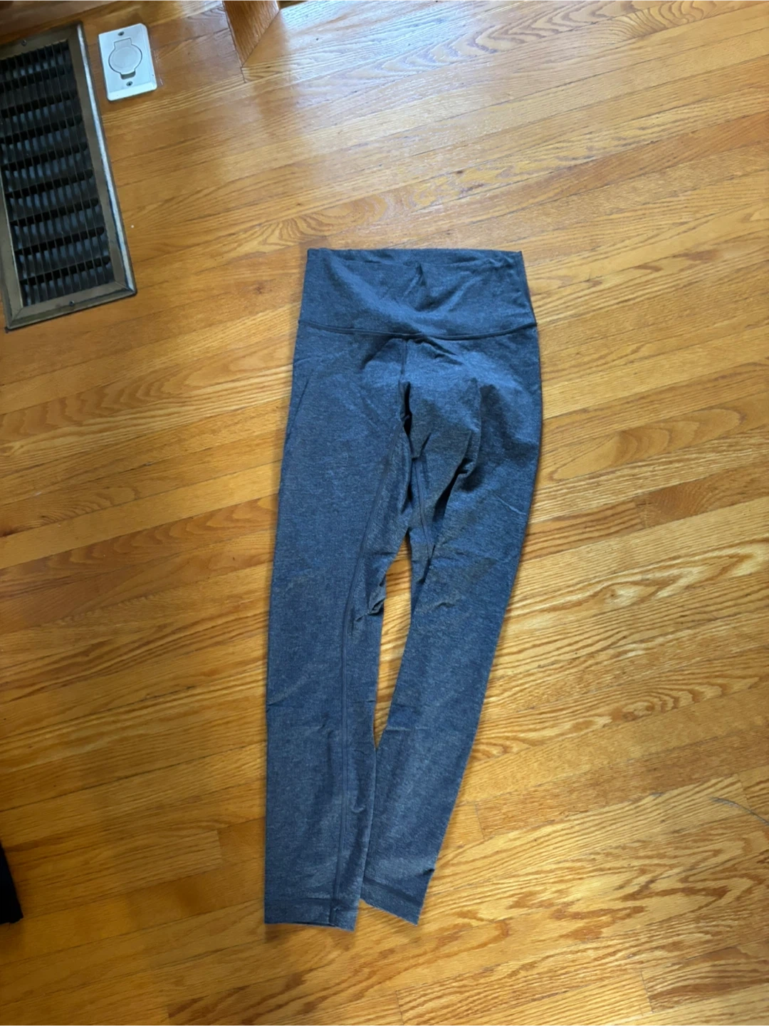 Selling a pair of Lululemon leggings in size 6! These are super comfy and in good condition. Perfect for yoga, running errands, or just lounging around the house. They have a small rip in the knee, which has been sewn (no hole left).