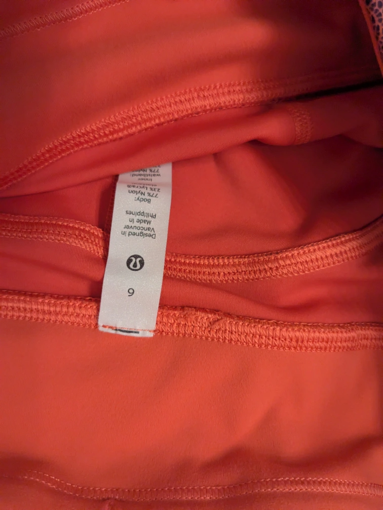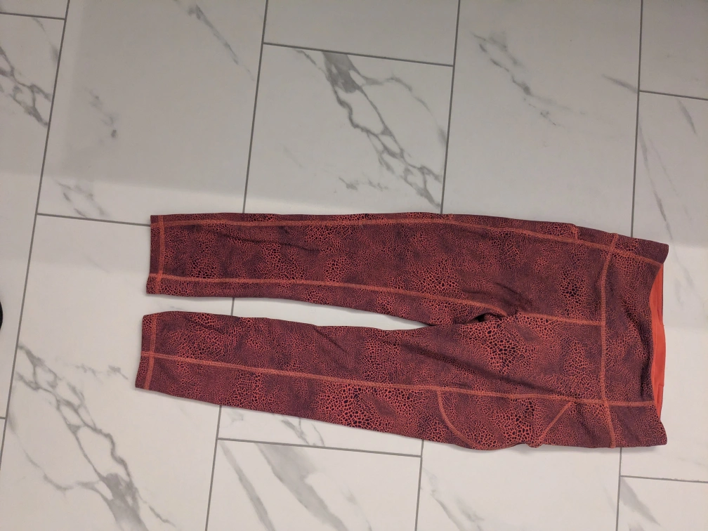 Selling a pair of Lululemon leggings in size 6! They're in great condition and feature a unique pattern. side pockets The leggings are made of 77% nylon and 23% Lycra elastane, making them super comfy for workouts or just lounging around pickup only cash only please