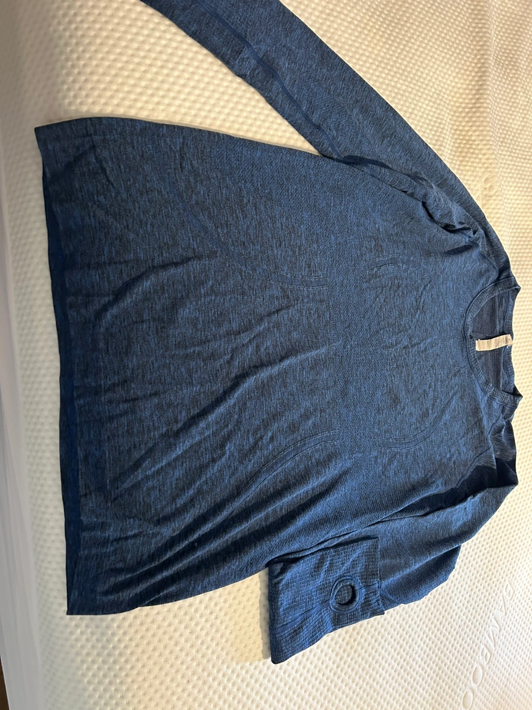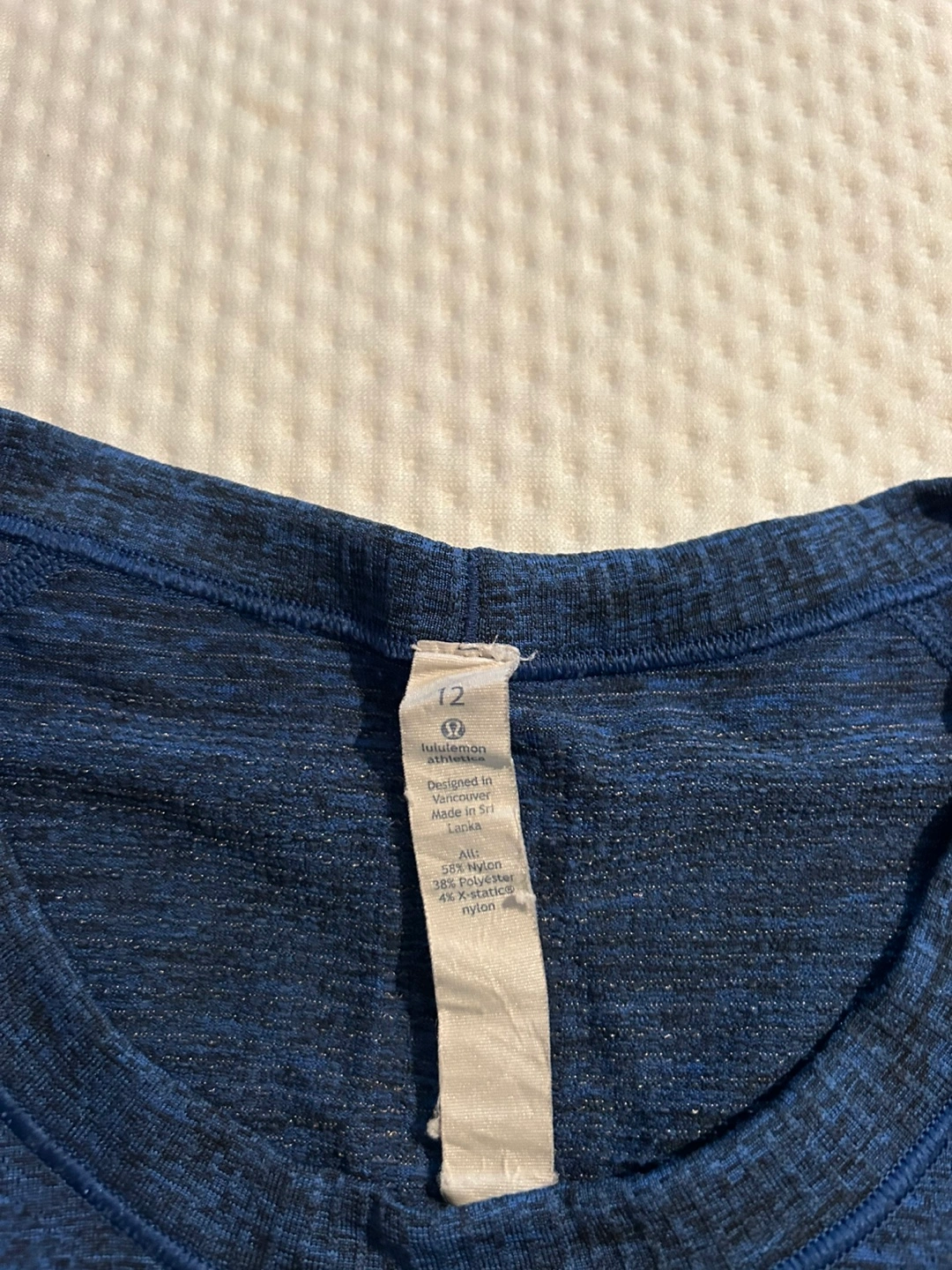 Blue long sleeve shirt. Size 12. Made of 88% polyester and 12% nylon.