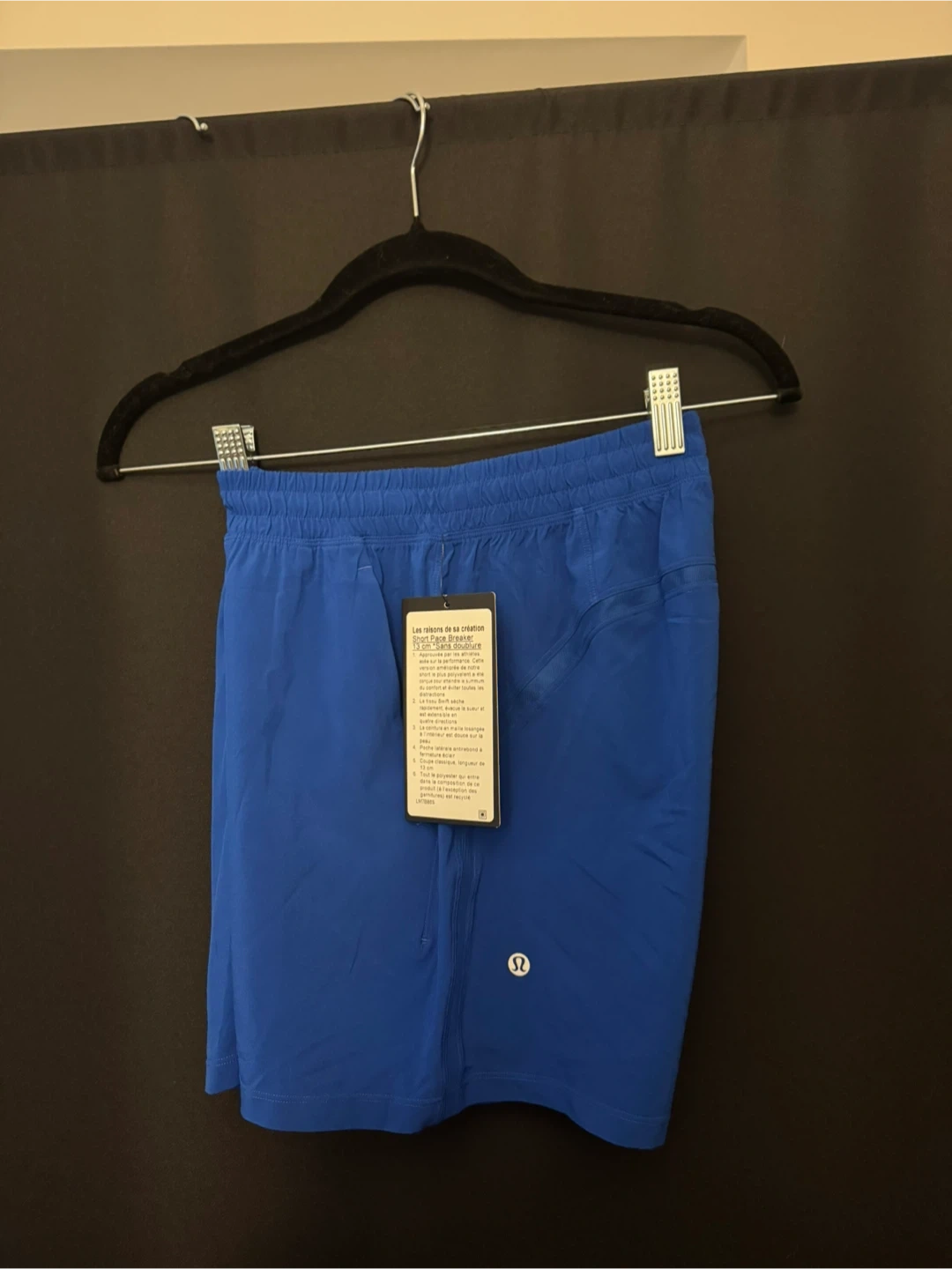 These Lululemon Pace Breaker shorts are in great condition and ready for your next workout! They are a vibrant blue colour and a size 5". Perfect for running or training, they offer a comfortable and flexible fit. Grab them while you can!