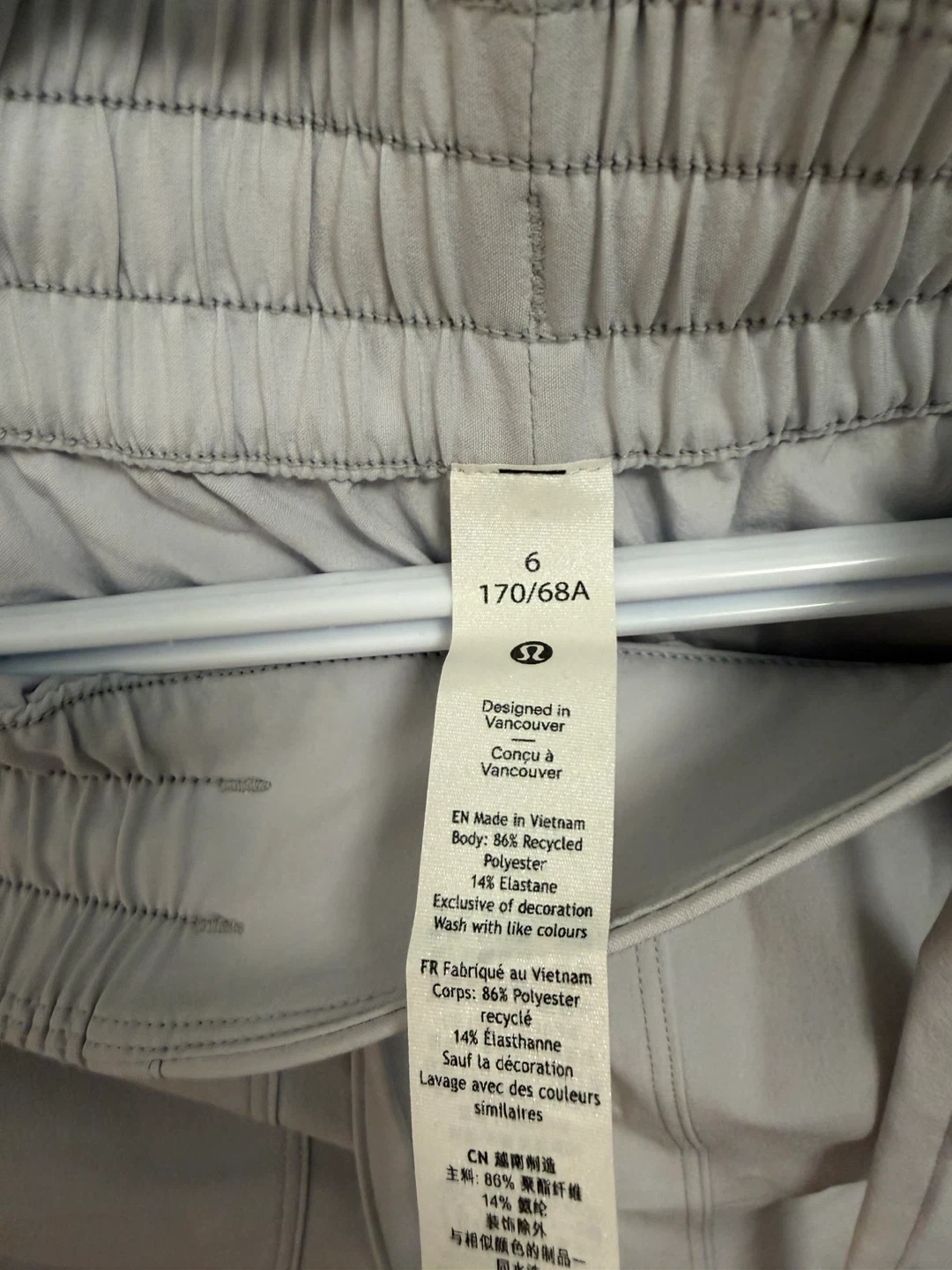Selling a brand new pair of Lululemon Pull-On MR Tapered-Leg Crop 23" pants in size 6. They are a light grey colour and made from lightweight, four-way stretch, sweat-wicking, and quick-drying Swift fabric. They also have UPF 40+ protection, hand pockets, and a cinchable drawcord at the waist! The body is made of 86% recycled polyester and 14% elastane. Willing to sell for 60% off. Purchased the wrong size few months ago. Original price is $138 + taxes