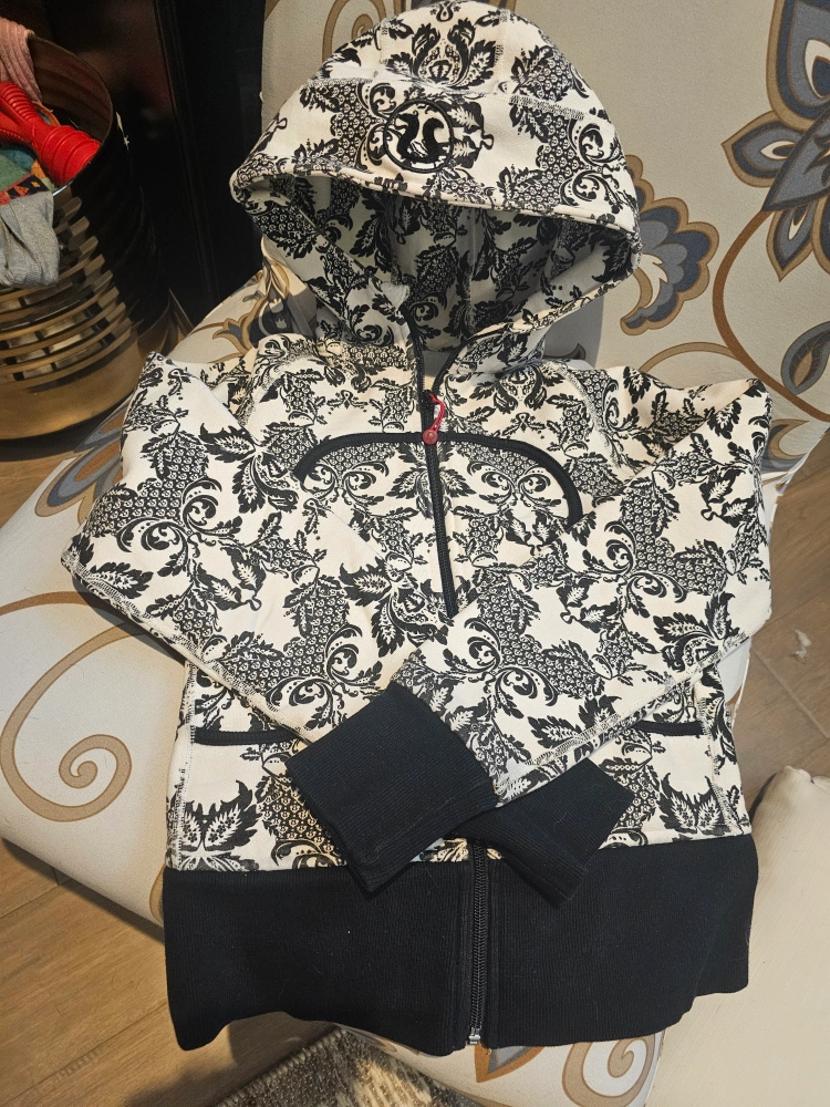 Selling Lululemon Scuba Hoodies 1. A striking black and white floral pattern. 2. Grey with a little sparkle. Both are in great condition and perfect for layering or wearing on its own. A stylish and comfy addition to your wardrobe!
