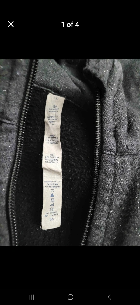 Selling a Lululemon Scuba Hoodie in size 10! It's a stylish and comfortable hoodie, perfect for workouts or casual wear. Material: - Body: 94% cotton, 6% lycra elastane, 1% metallic - Rib: 94% cotton, 6% spandex, 1% metallic